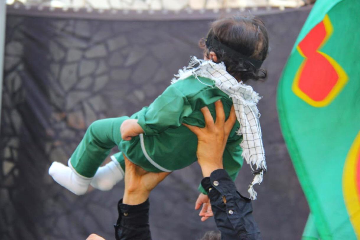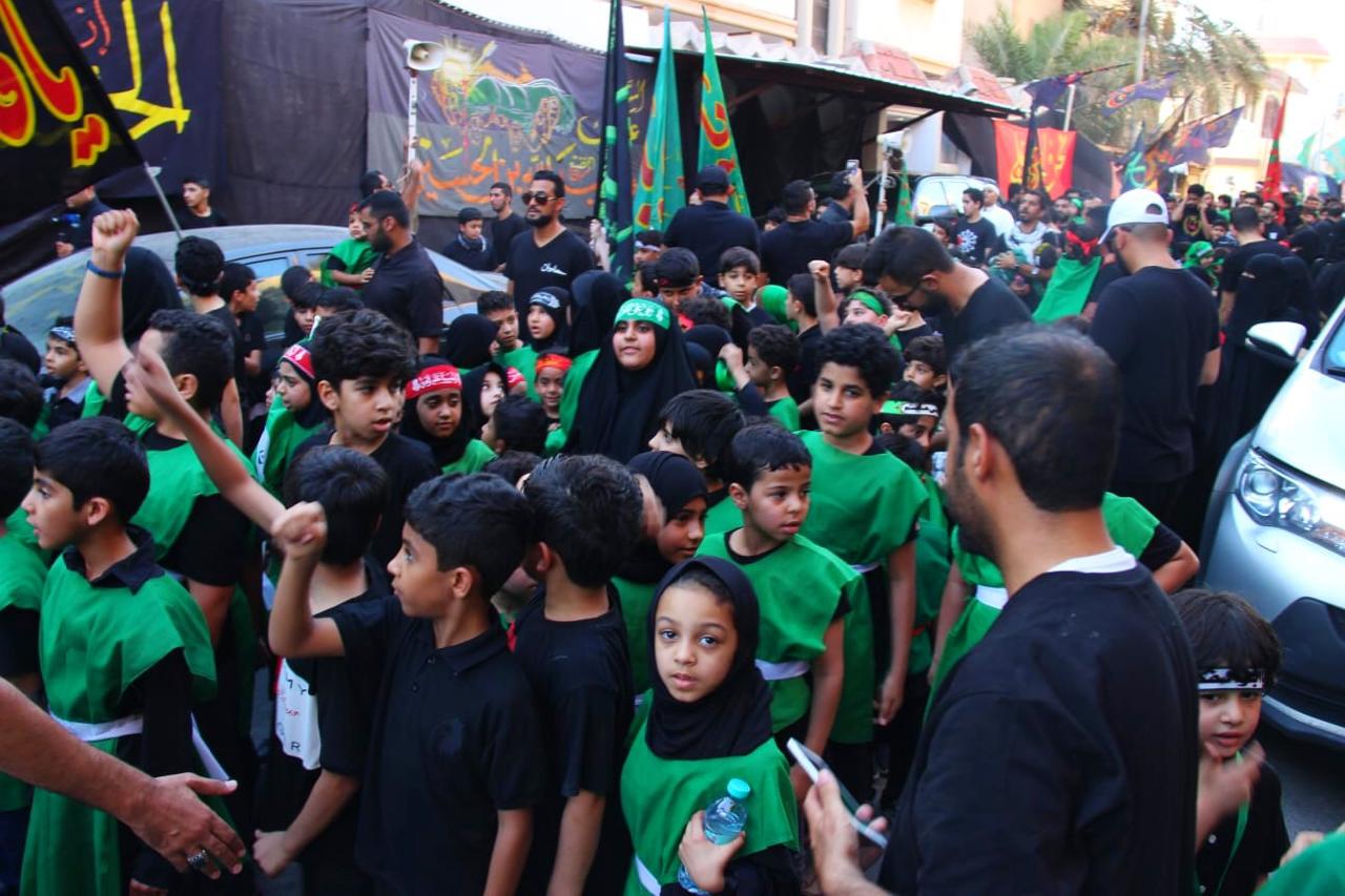 وانطلقت المسيرة التي غصت بالمعزين من مختلف الأعمار في عامها 12 من أمام حسينية ومصلى الإمام المهدي في البلدة لغرس القيم العاشورائية في نفوس الصغار.