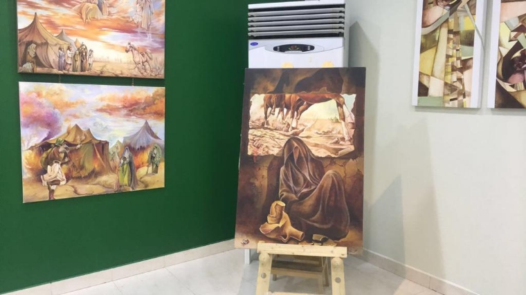 استلهم مجموعة من التشكيليين موضوعات رسومهم في المعرض الخاص بمؤسسة الإمام الحسين