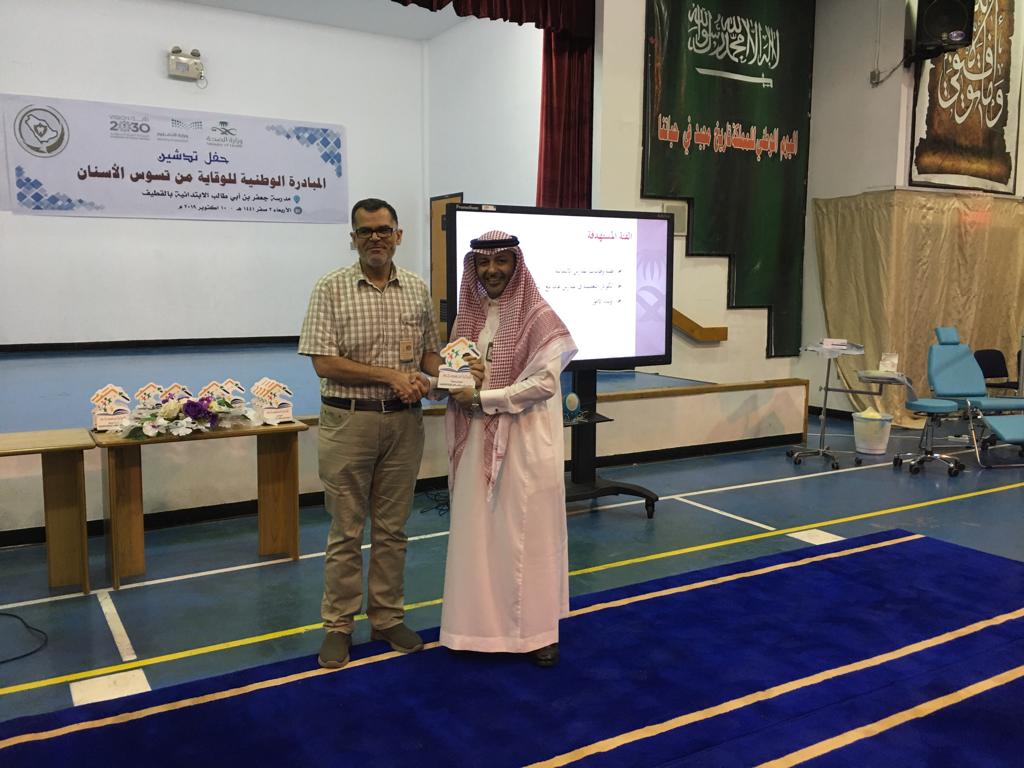 وحضر مدير خدمات طب الأسنان بالتجمع الصحي الأول بالشرقية الدكتور أحمد الكلثم ومدير المراكز الصحية بمحافظة القطيف بالإنابة الدكتور حسين السلمان ومدير مكتب التعليم بالقطيف عبدالكريم العليط وقائد مدرسة جعفر بن أبي طالب ونخبة من المدرسين ومشرفي الصحة.