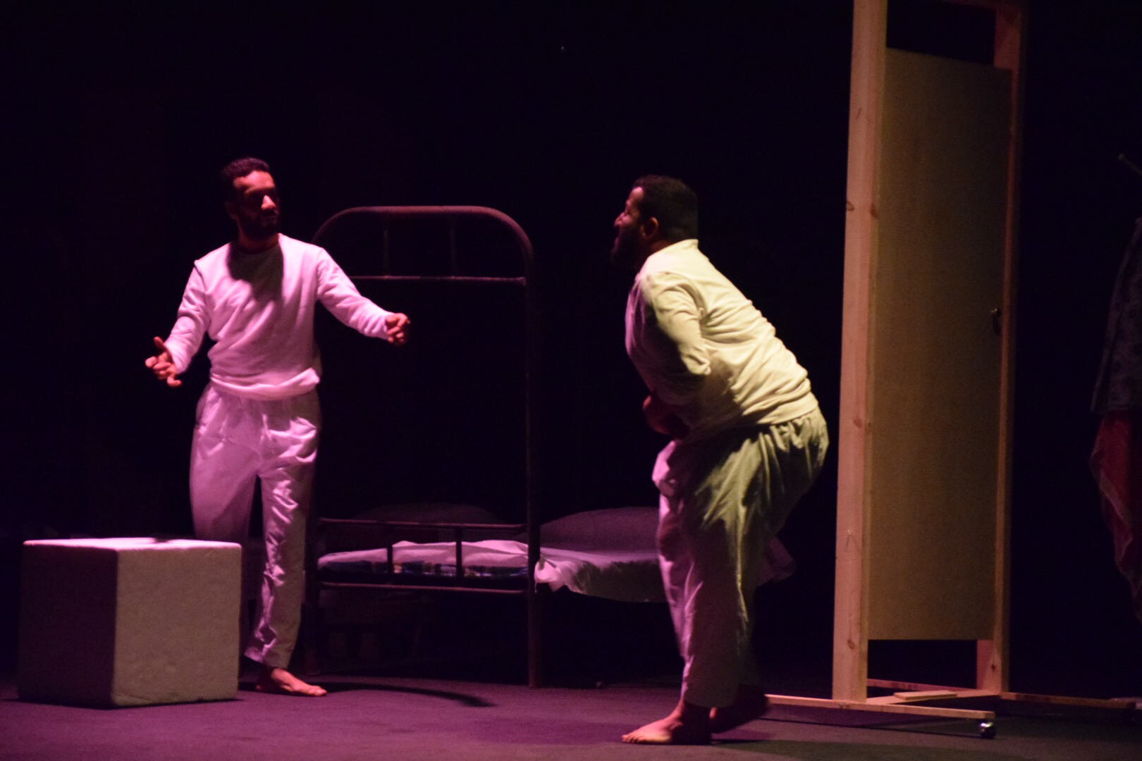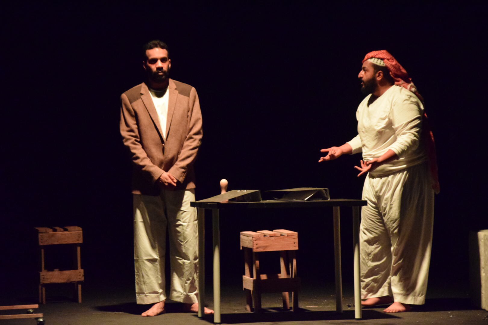 وقدمت جمعية الثقافة والفنون بالدمام مسرحية «المسخ» تأليف إشراق الروقي وإخراج ماجد السيهاتي وتمثيل فيصل الدوخي وإبراهيم الحجاج.