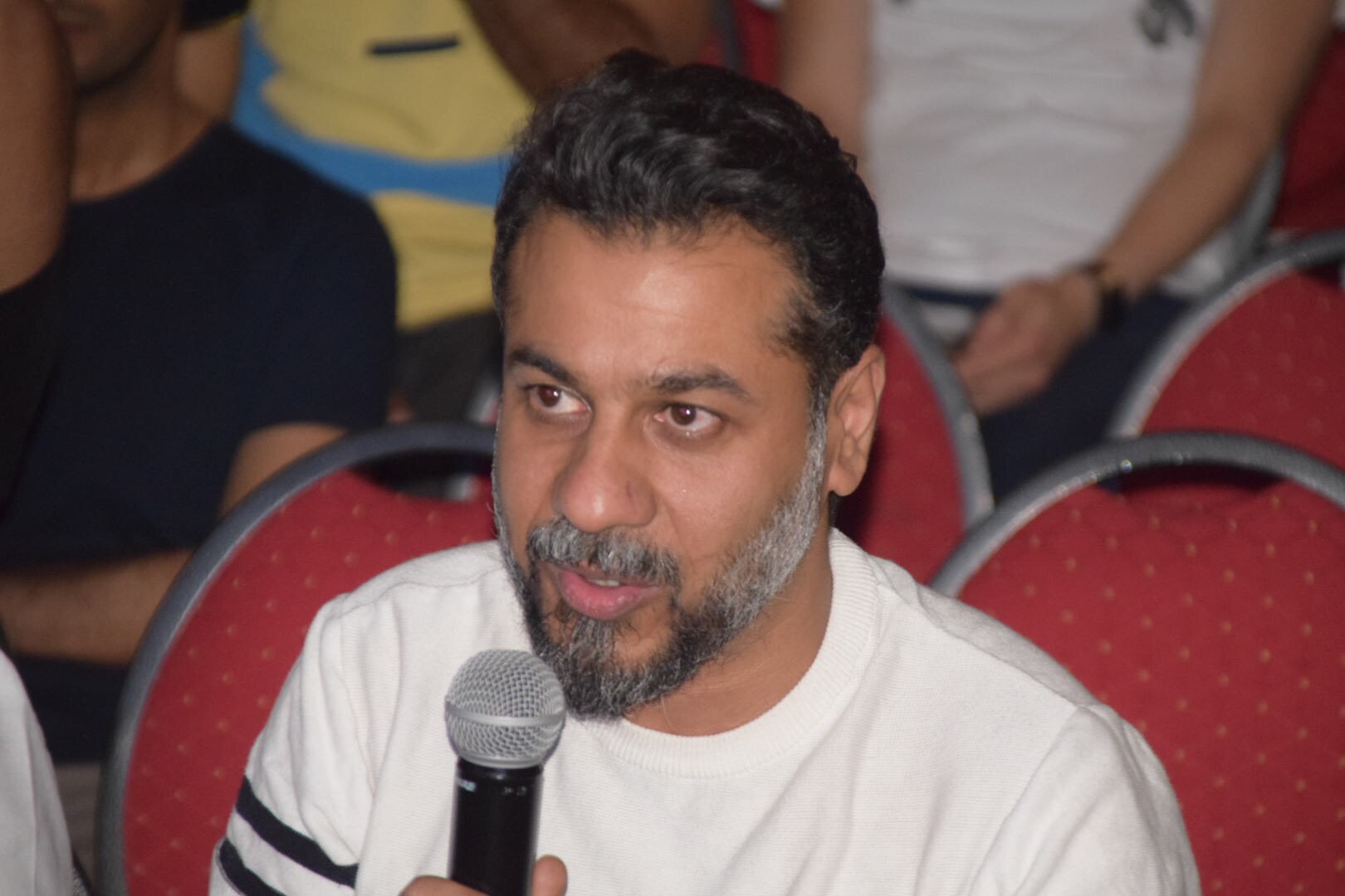 وأضاف لو اهتممنا أكثر بالمسرح، وعممناه أكثر وأكثر، لأصبح العالم أجمل، ولحصرنا التطرف والعنف في دوائر مغلقة. مبتهج بهذا الملتقى وانا أرى المسرح يستمر، جيلاً بعد جيل، يأتي جيل ويترك اثره، ويكمل بعده جيل جديد، ويسلمون مشعل المسرح للجيل الذي يليه".