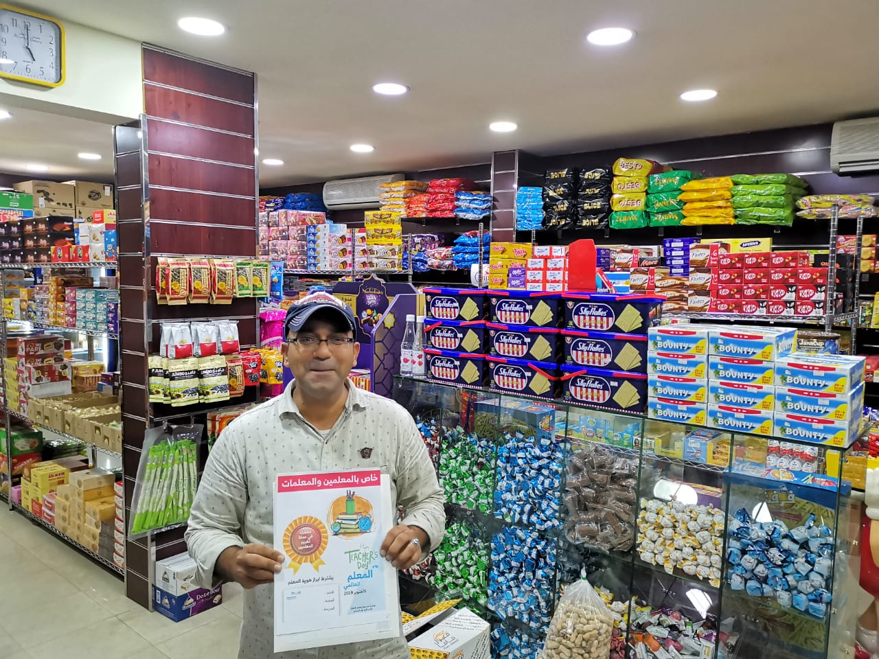 وأضاف أن المبادرة تشمل جميع معلمي ومعلمات الوطن، حيث تم وضع ملصق خاص على واجهة المحلات المشاركة في هذه الحملة ليسهل على المعلم الإستفادة من هذه الخصومات التي تستمر لمدة أسبوع من تاريخ اليوم العالمي للمعلم.