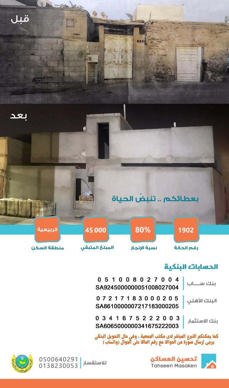 وأوضح انه تم إنجاز 80٪ من مرحلة البناء وان التكلفة المتبقية 45000 ريال لمرحلة التشطيب.