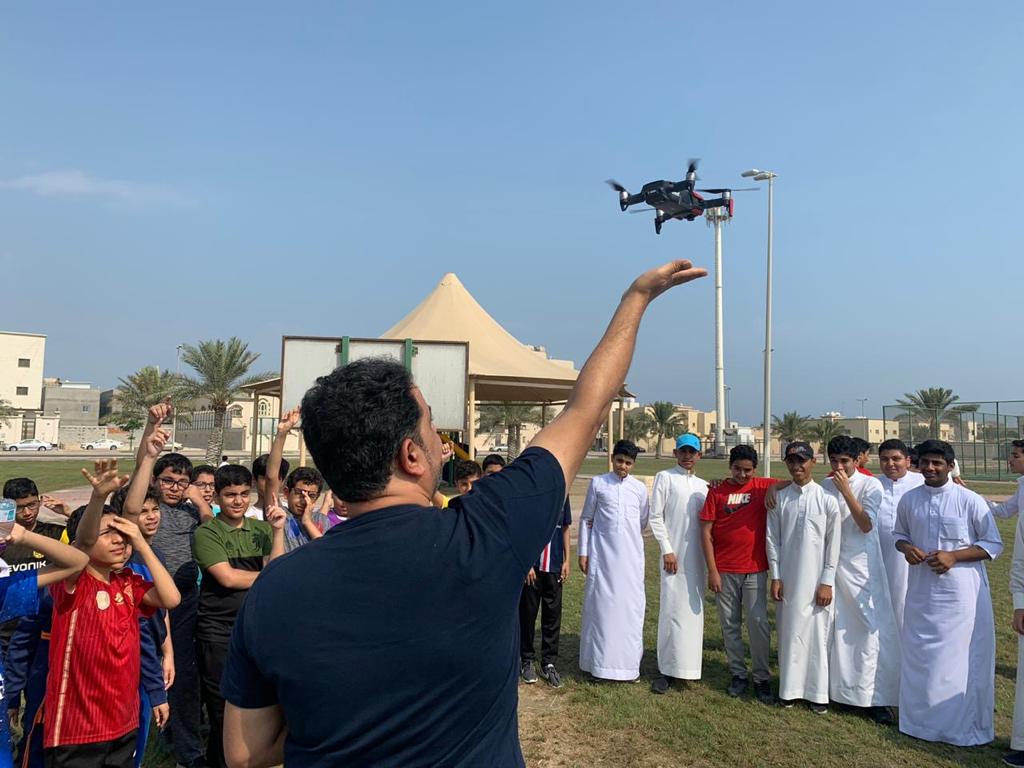 حلقت طائرة الدرون في فصول الموهوبين بمدرسة مؤتة المتوسطة بالقطيف ليعيشوا تجربة فريدة تحت إشراف الزميل في ”جهينة الاخبارية“ خالد الطلالوه المعروف بجوجل ايرث القطيف.