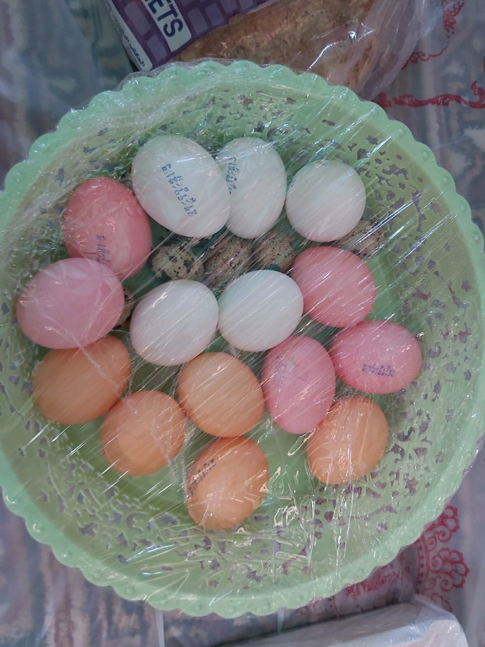 جمعت سفرة طولها 80 مترا 650 طبقا من البيض في مهرجان ”البيض“ الأول التي تنظمه مدرسة اليرموك الابتدائية بصفوى.