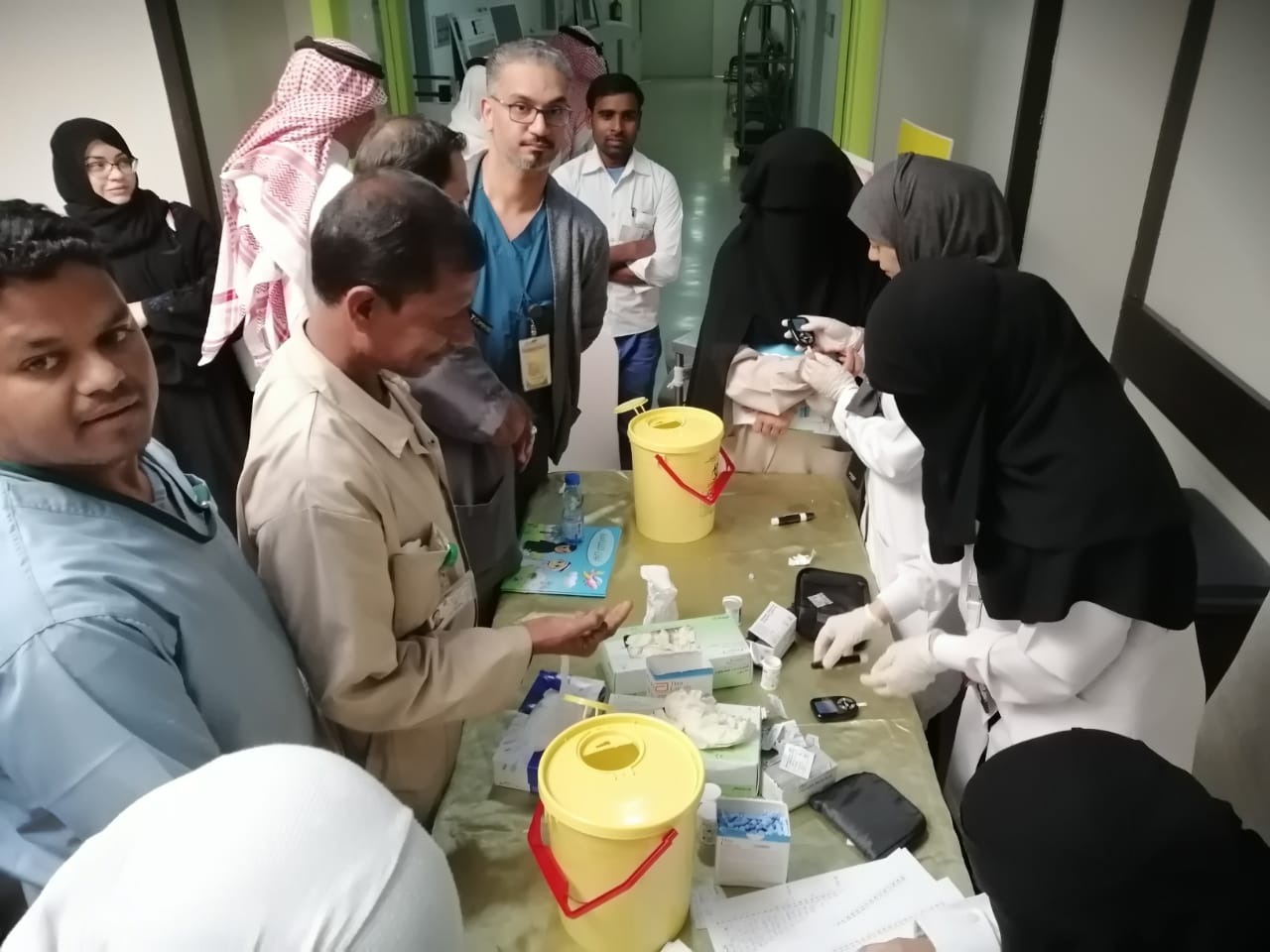 وتحت رعاية المدير التنفيذي لمستشفى القطيف المركزي وتحت شعار ”تطوع بلا قيود“ وضمن فعاليات يوم التطوع العالمي 2019، أقام قسم الرعاية الصحية المنزلية بالقطيف وبالتنسيق مع قسم التثقيف الصحي يوم الخميس ببهو المستشفى، فعالية تطوعية شملت فحصا لنسبة السكر وضغط الدم لعمالة المستشفى وتثقيفا صحيا لهم وتوزيعا للهدايا الرمزية عليهم.