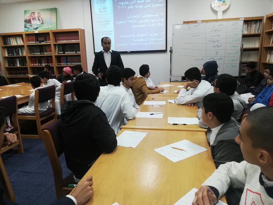 وهدفت الورشة إلى نشر ثقافة التطوع لدى المجتمع الطلابي في المدرسة الذي له دور إيجابي في بناء المجتمعات وتحقيق رؤية 2030 للوصول إلى مليون متطوع.