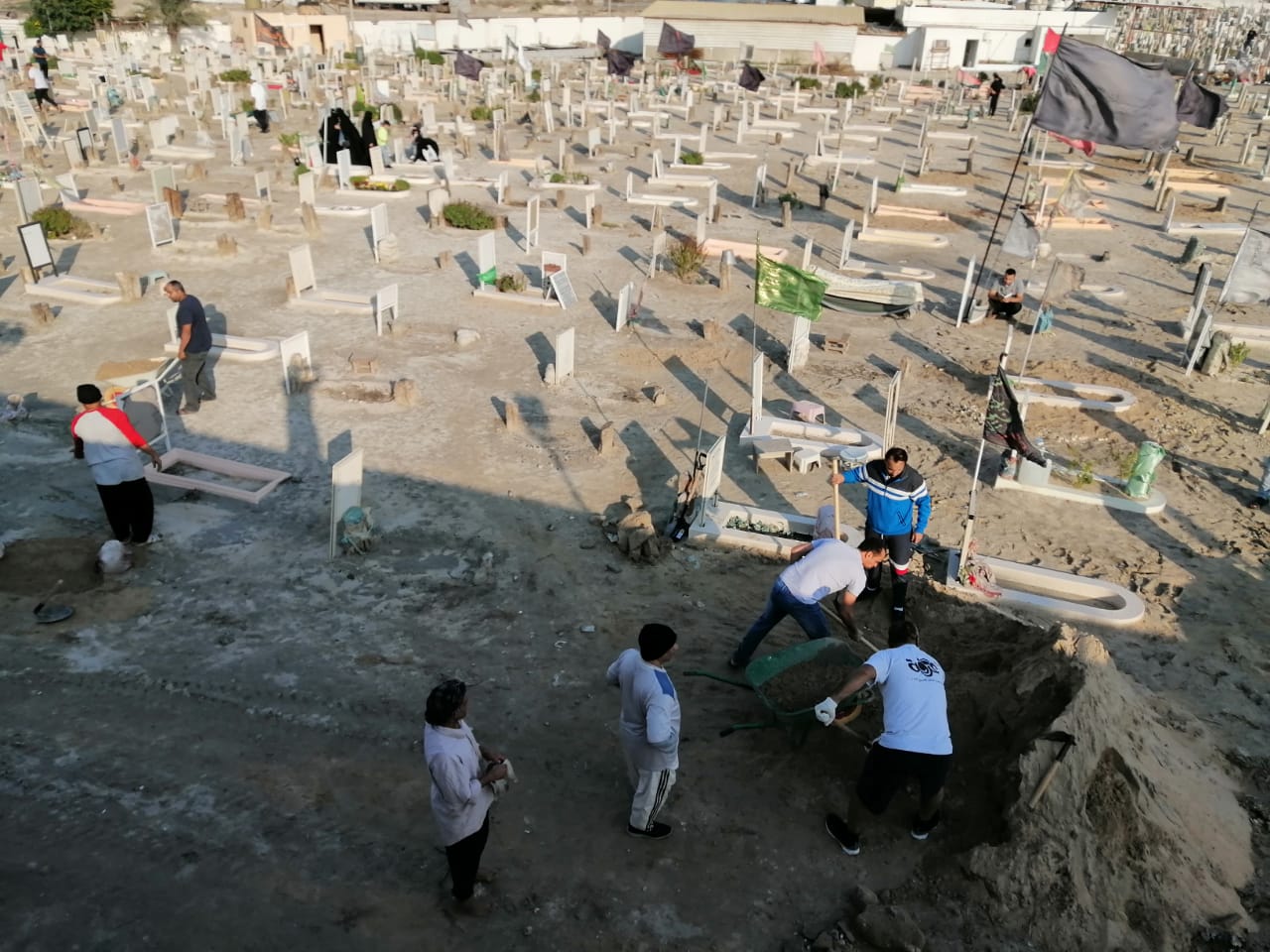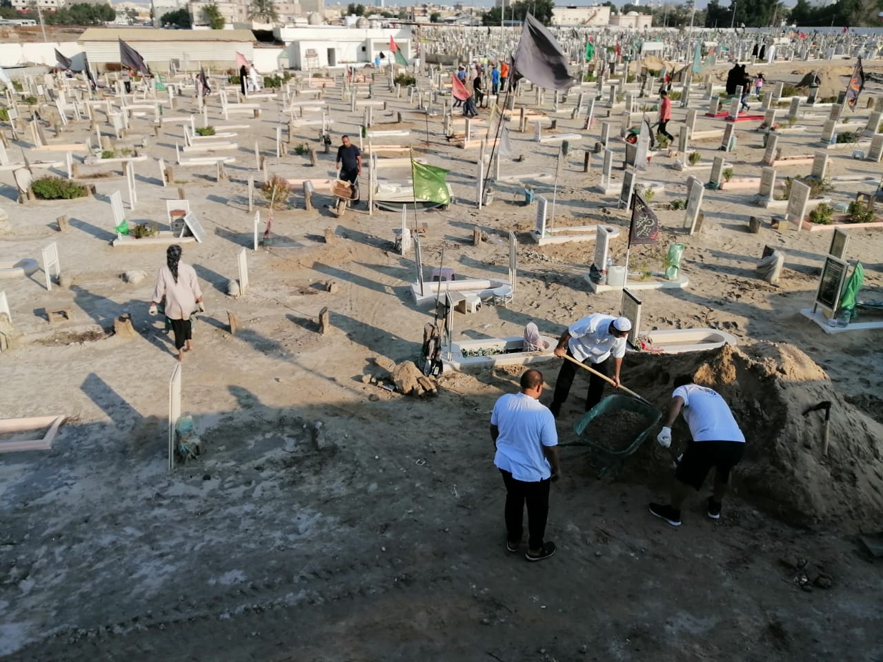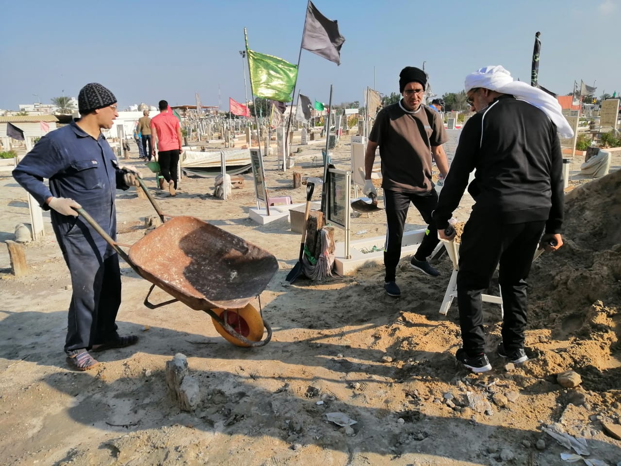 بالصور.. عشرات المتطوعين يرممون القبور في ”خباقة القطيف“