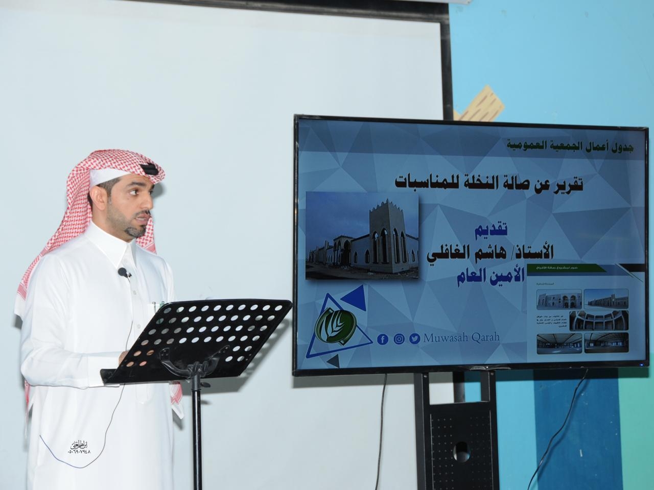 عقدت جمعية المواساة الخيرية للخدمات الاجتماعية بالقارة مساء الثلاثاء جمعيتها العمومية الغير العادية والعادية وذلك في مقر روضة الأطفال النموذجية وبحضور مدير مركز التنمية الاجتماعية بالأحساء أحمد الفضلي ومحمد القضيب وأحمد العيد كممثلي لمركز التنمية الاجتماعية.