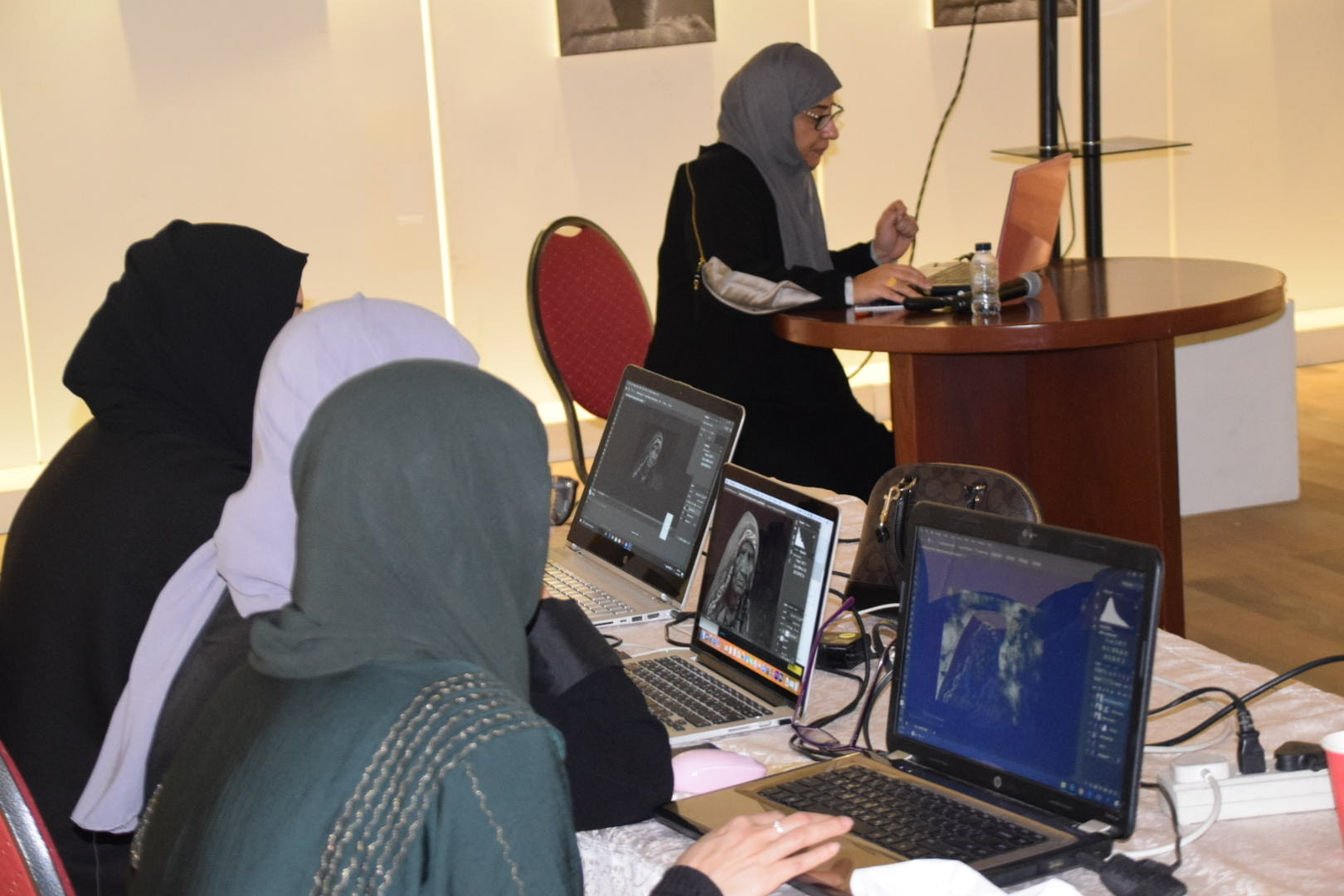 أحتضنت قاعة عبدالله الشيخ «بالدمام» مساء الأثنين الفنانة نجاة علي الفاضل في ورشة التصوير“حكاية احادية”للأعمال الأحادية أساليب إلى أحادي الفوتوشب.