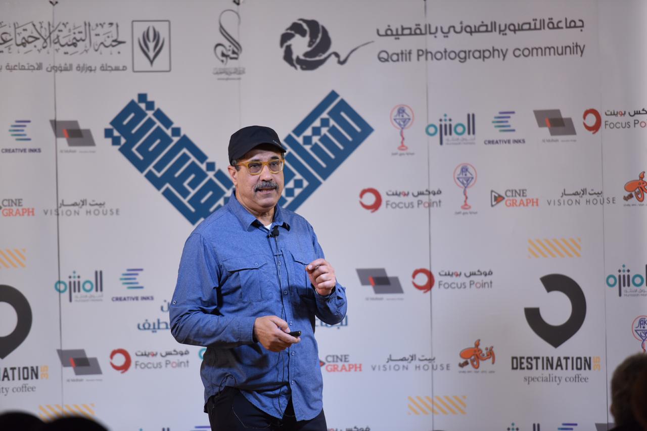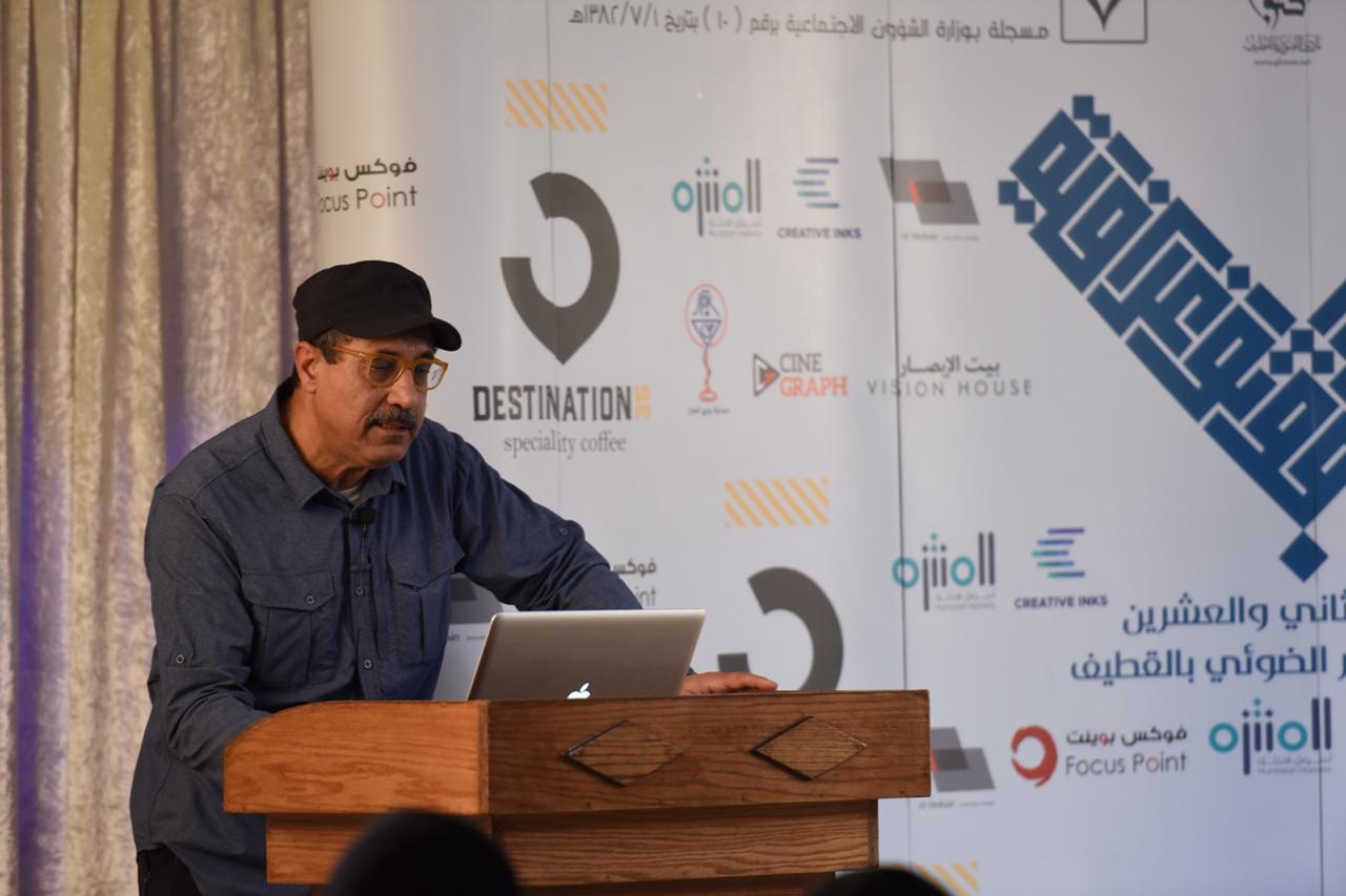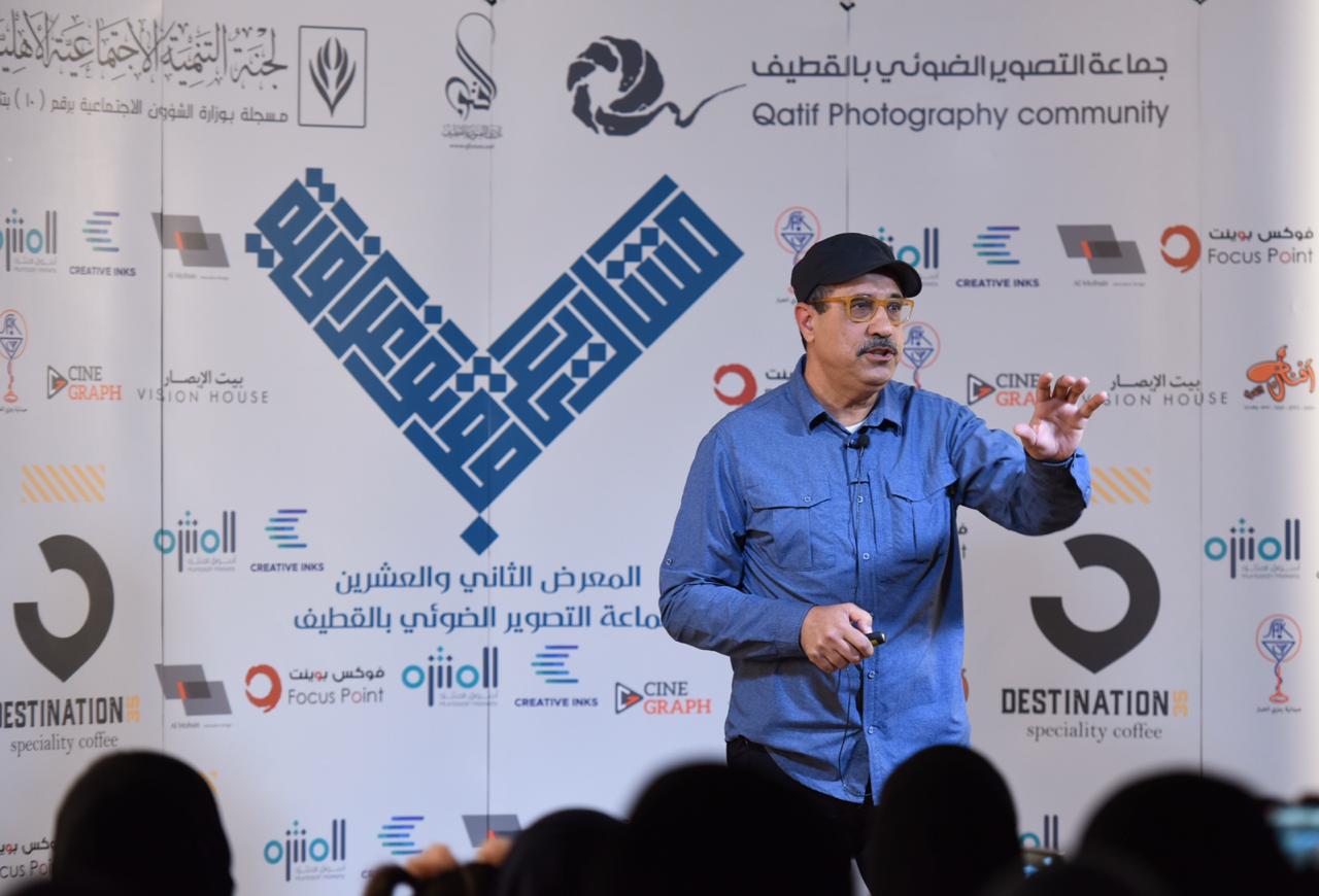 ألقى المصور علي المبارك محاضرة بعنوان "ضد الشمس" في قاعة نادي الفنون بالقطيف مساء الأحد الماضي.