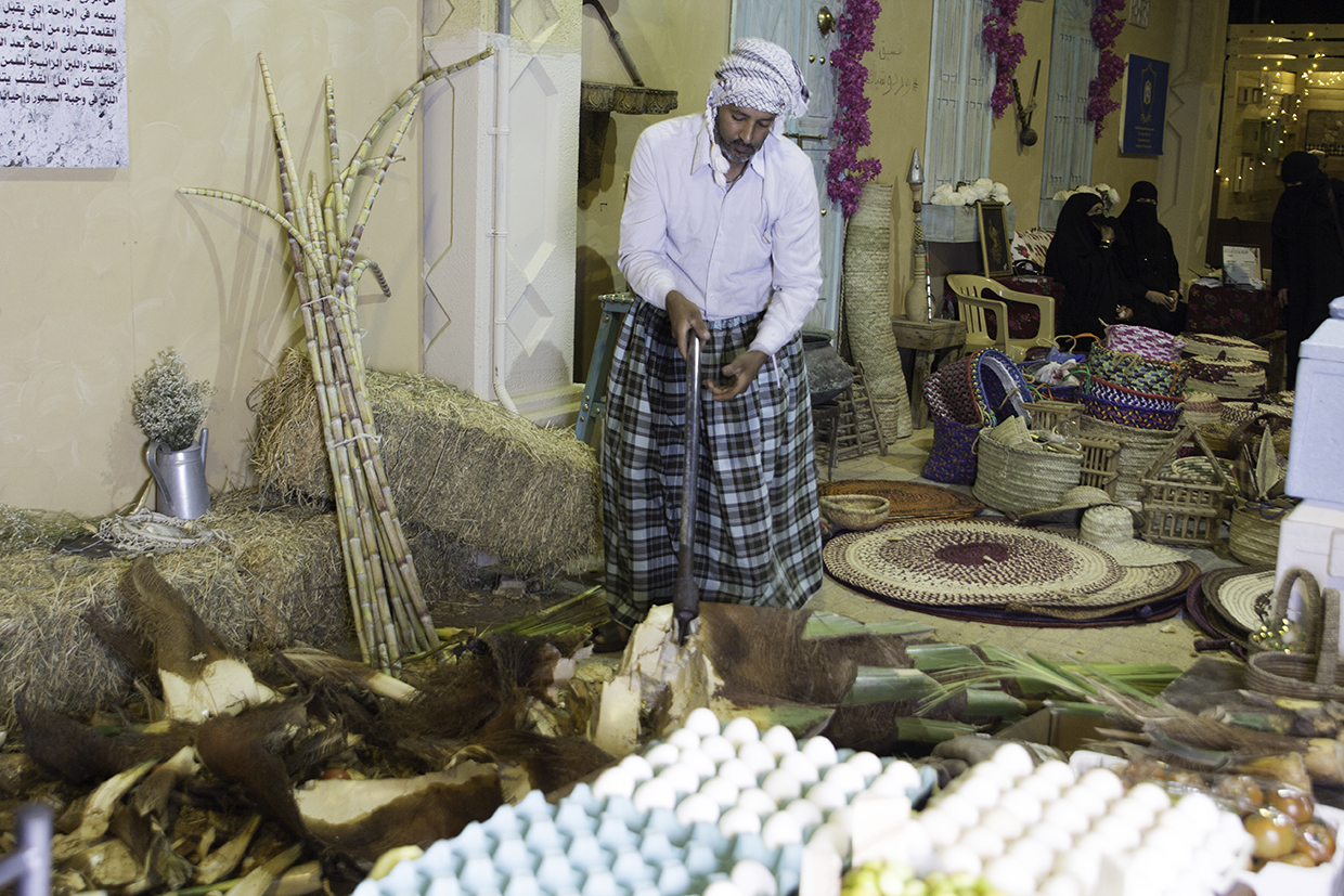 وتكمل ”جسدتها بالأركان التي وصفها لي فأحضرت بائع الحليب وبائع الجدب وطاهية اللقيمات بالإضافة للعبة مكاسر البيض“.