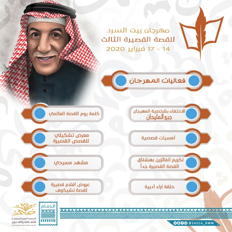 وينطلق المهرجان في جمعية الثقافة والفنون بالدمام، الجمعة القادم فبراير الذي يوافق الاحتفال بيوم القصة العالمي، مستمراً أربعة أيام في مقر الجمعية.