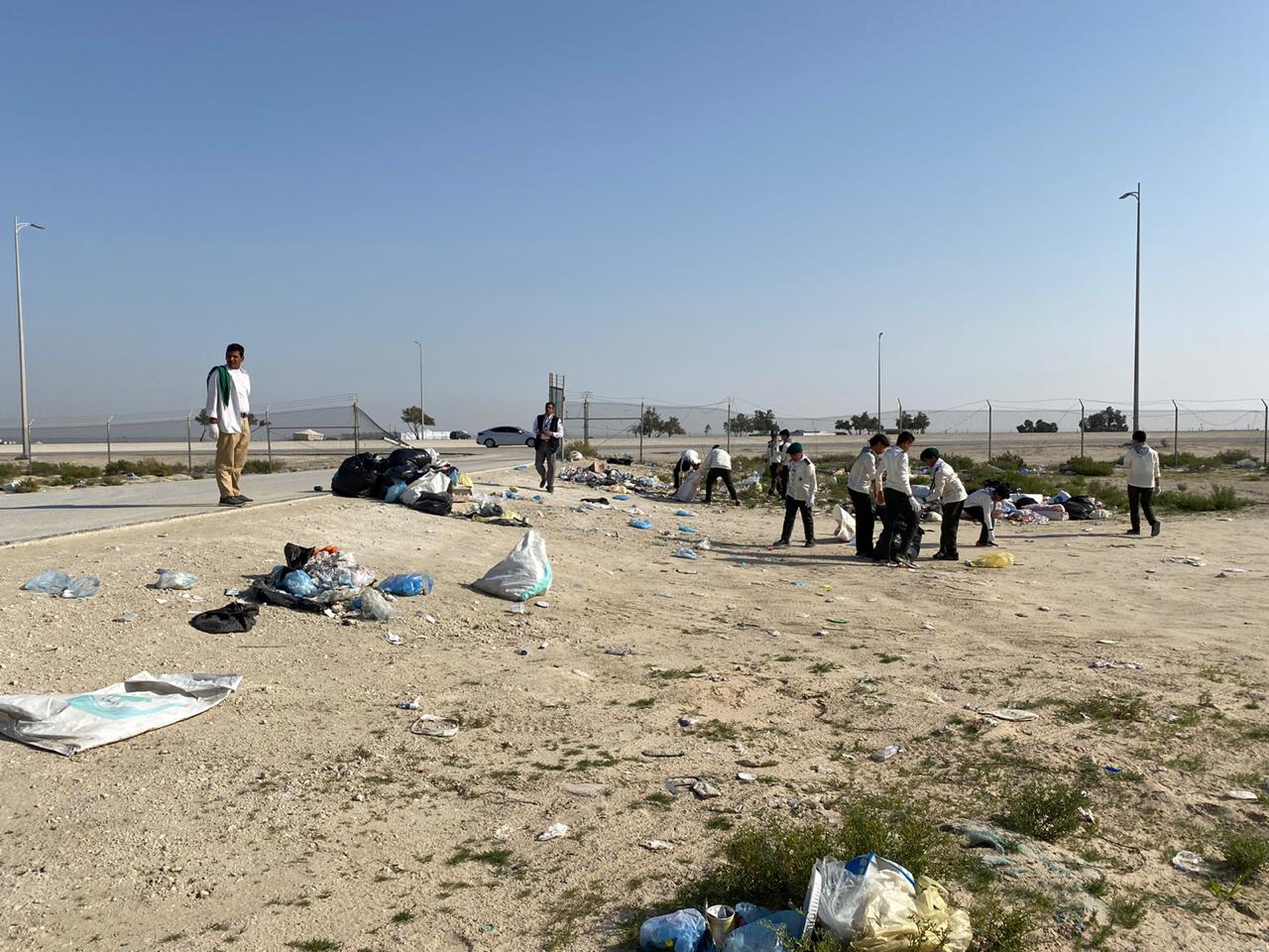 وقام الكشافة بجمع المخلفات البلاستيكية في بر المطار حيث تكثر المخلفات البلاستيكية.
