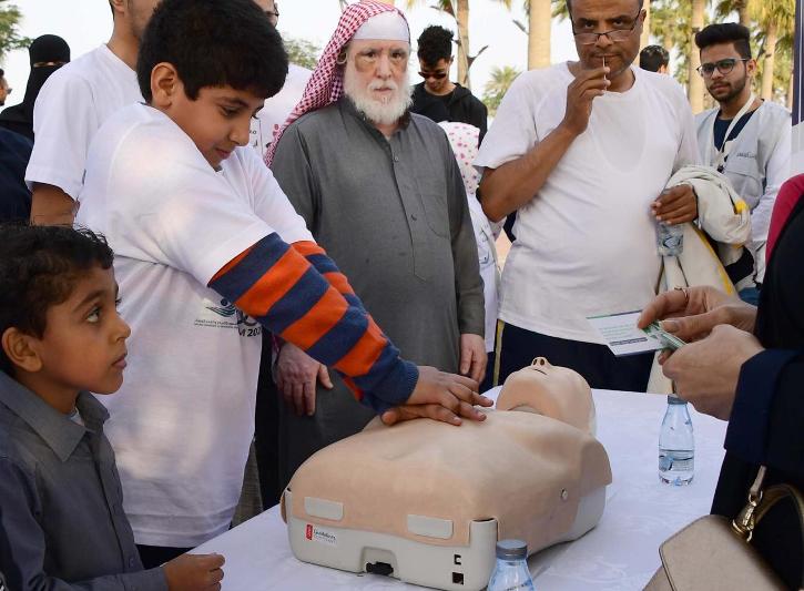 وهدفت الفعالية إلى التثقيف بآلية الإنعاش القلبي الرئوي للمصاب، وتطبيق المشاركين للإنعاش القلبي الرئوي والحصول على شهادة إتمام جميع الخطوات لتحفيز المشاركين.