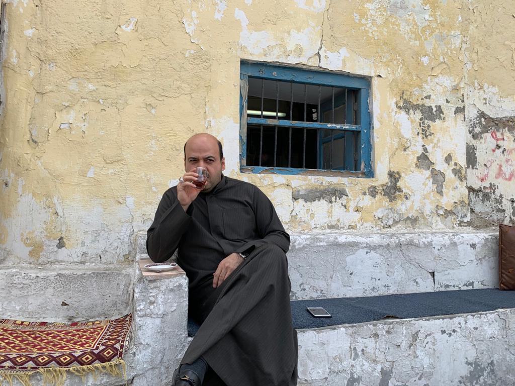 ويدير المقهى الحاج حسن الغراب ”أبو علي“ الذي يستقبل زوار المقهى من كبار السن في الساعات الأولى من صباح كل يوم، لتبادل أطراف الحديث وتناول وجبة إفطارهم.