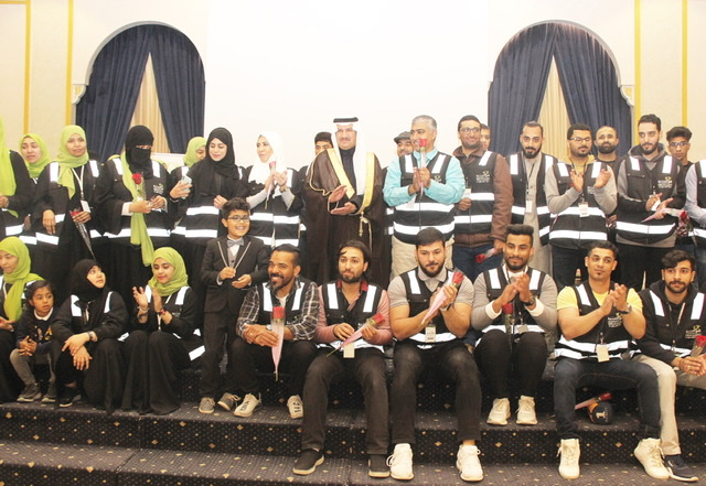 كرم أهالي البحاري 80 متطوعاً من فريق ”في الخدمة“، في صالة الملك عبد الله بن عبد العزيز.