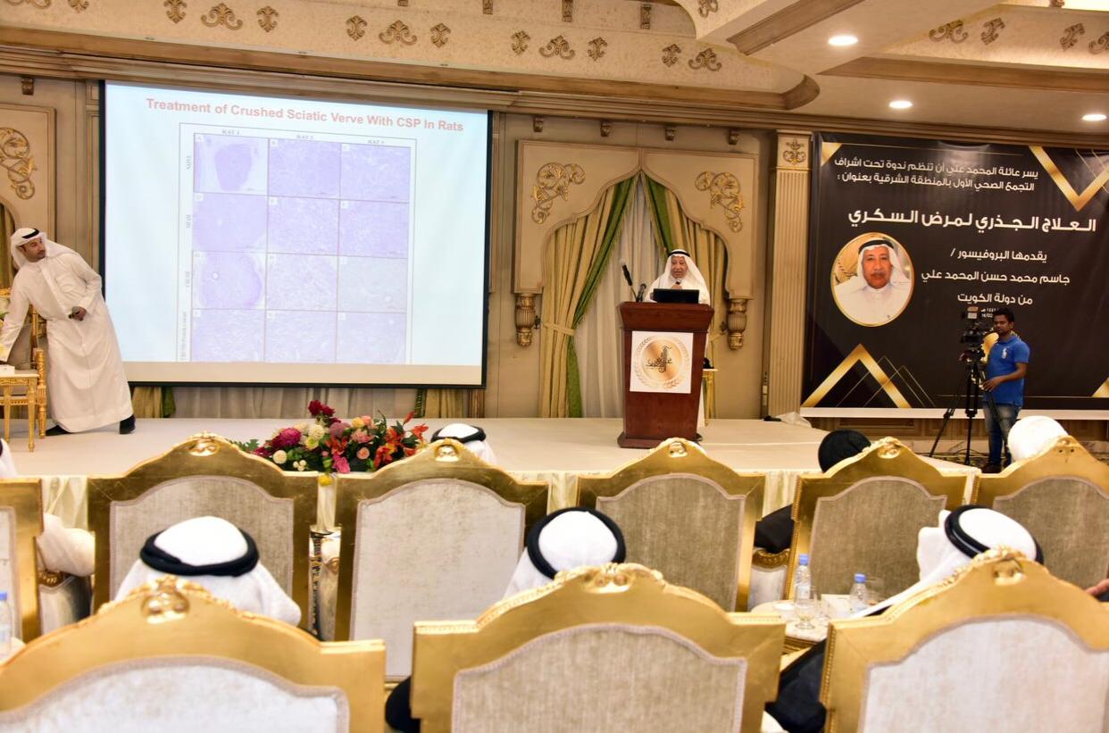 وأضاف الباحث والعالم الكويتي استاذ العلوم البيولوجية ومدير مركز علوم البحار بجامعة الكويت سابقا، الدكتور جاسم المحمد علي، في المحاضرة التي قدمها مساء امس الاول في مدينة الدمام بعنوان «العلاج الجذري لمرضى السكري»، وبحضور عدد من الاطباء والمتخصصين في المجال الطبي ”أن وجود هذه المراكز العلمية المقننة في دول مجلس التعاون من شأنها أن ترفع من مستوى إمكانية علاج السكري في العالم، ونكون جهة محايدة كعلماء وبعد ذلك يتم اعتماد الدواء الملائم لهذا الداء“.