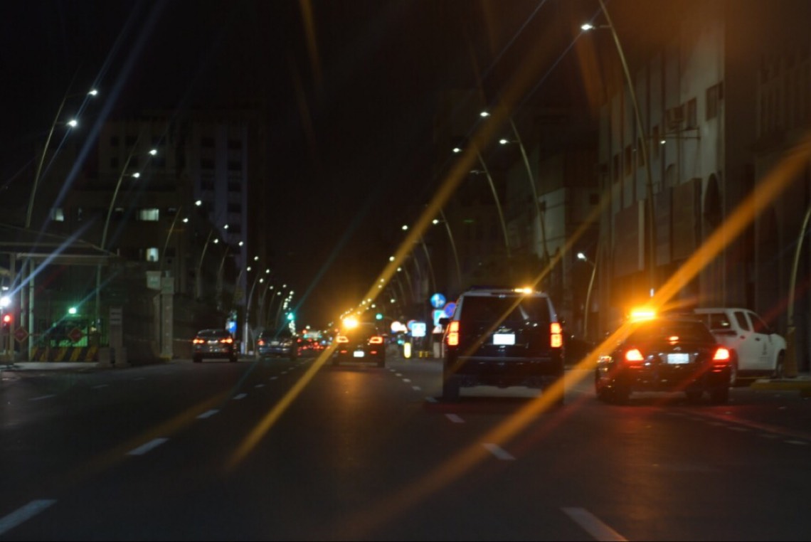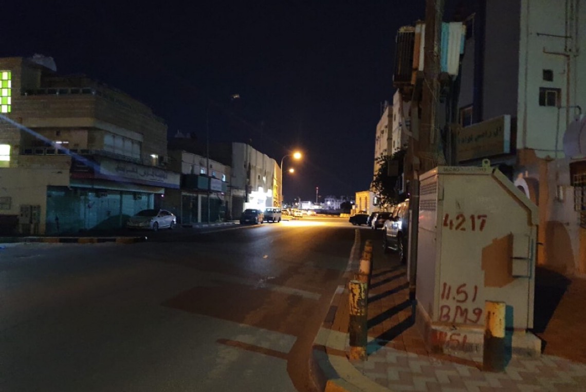 تحولت شوارع القطيف عند الساعة السابعة الى سكون تام، حيث اختفت أصوات المركبات التي كانت تثير الضجيج طيلة ساعات النهار.