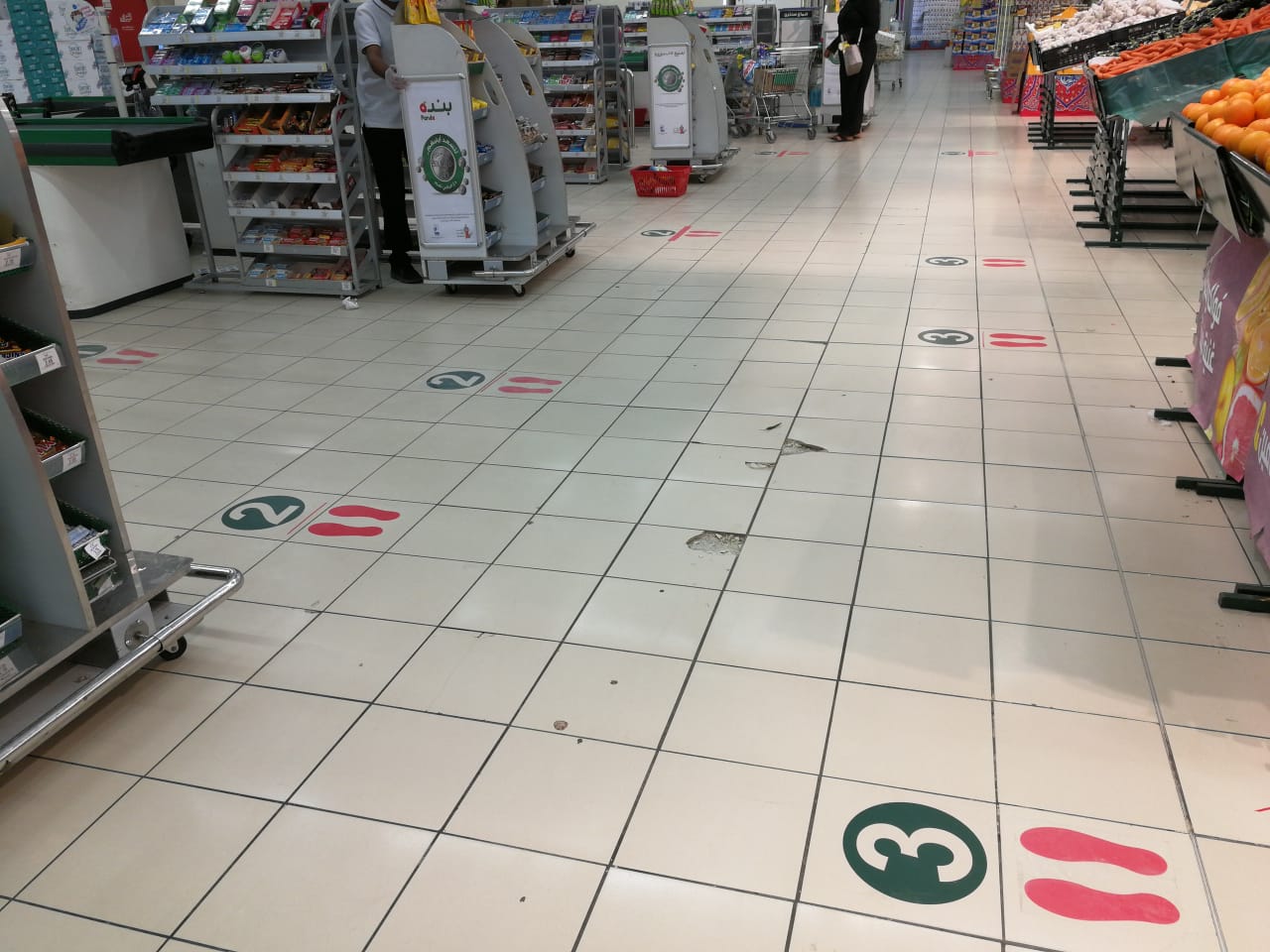 وأكد الجبير على ضرورة ترك مسافة لا تقل عن متر واحد بين المتسوقين عند عملية الدفع النقدي وأثناء التسوق، وذلك من خلال تحديد علامات إرشادية أرضية لوقوف المتسوقين باللغتين العربية والانجليزية، بالإضافة للتشجيع على التسوق الإلكتروني وخدمات التوصيل للمنازل من خلال التطبيقات الإلكترونية المعتمدة، بهدف الحصول على تجربة تسوق آمنة تحافظ على صحة المتسوقين وسلامة أفراد الأسرة.