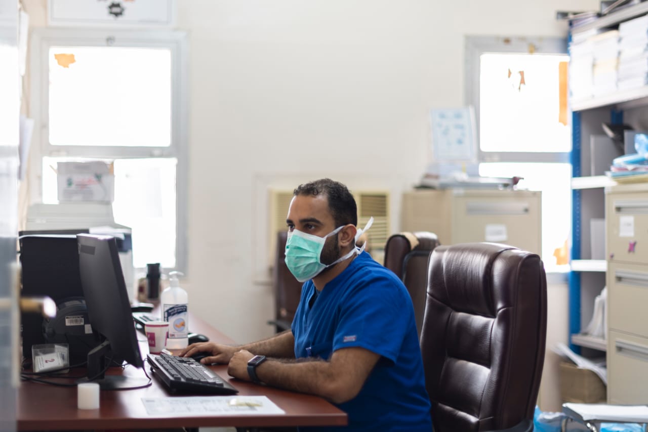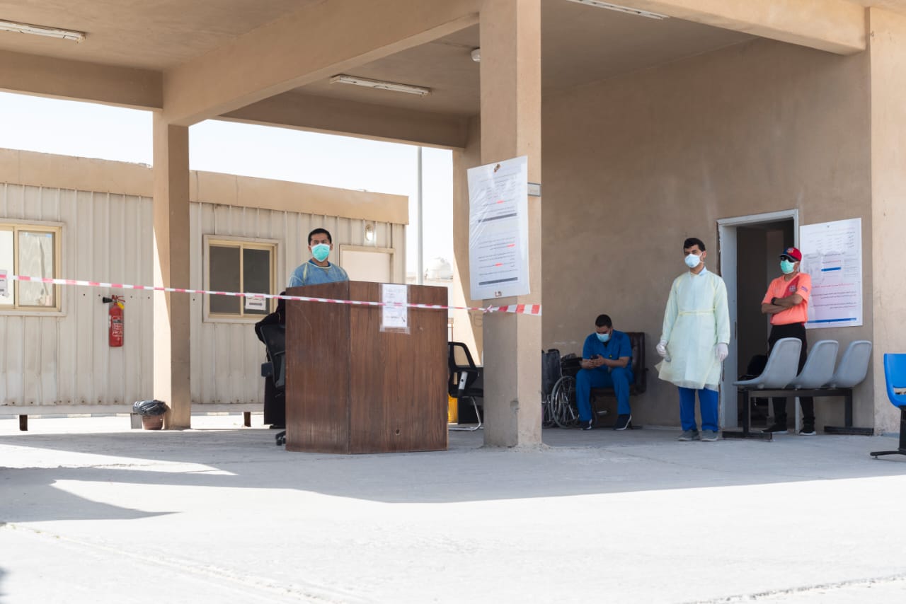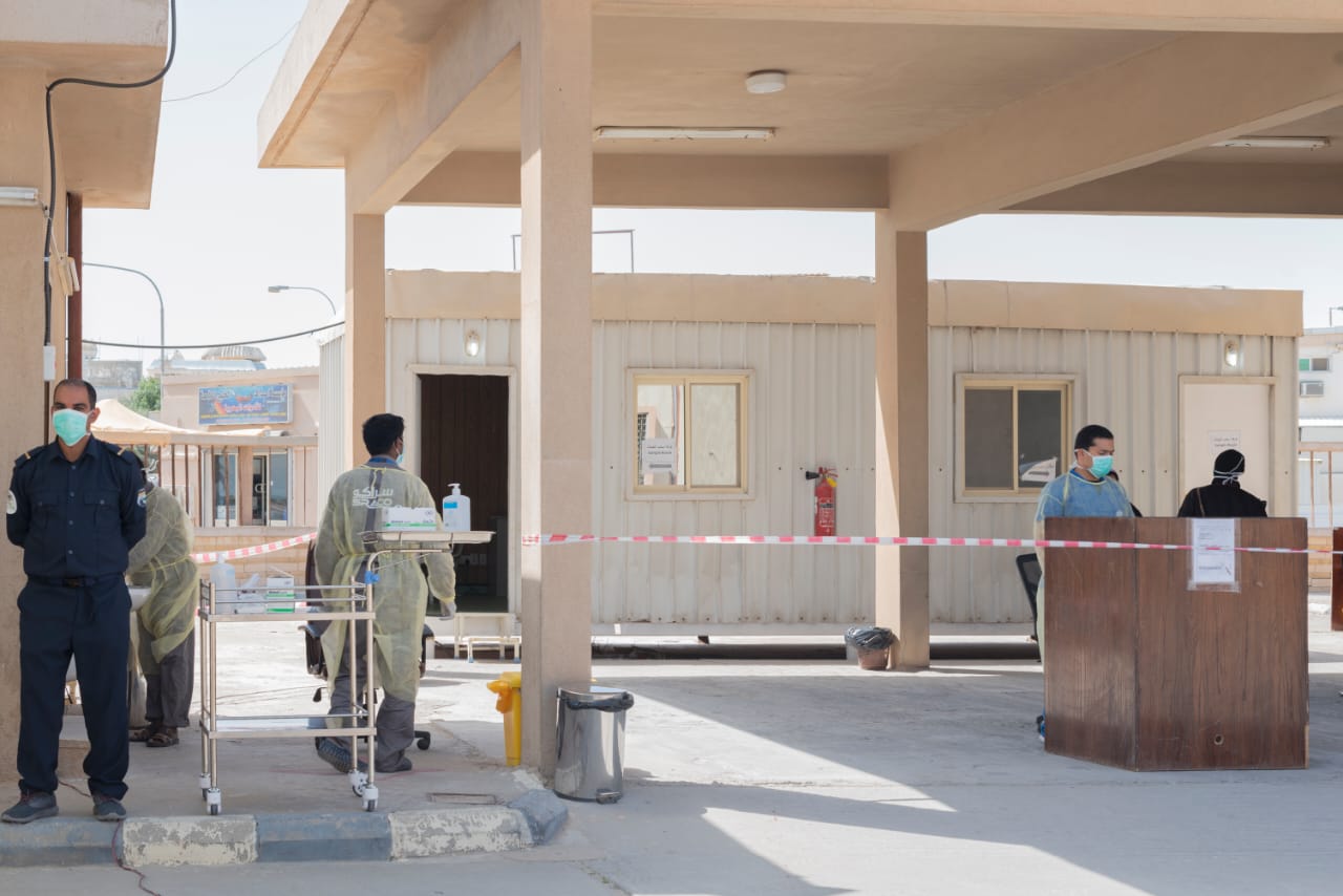 وثق المصور الفوتغرافي حسين آل سلطان وزميلته إتزان أبو الليرات جهود الكوادر الطبية في الخط الامامي بنقطة الفحص عن كورونا بمركز صحي دارين.