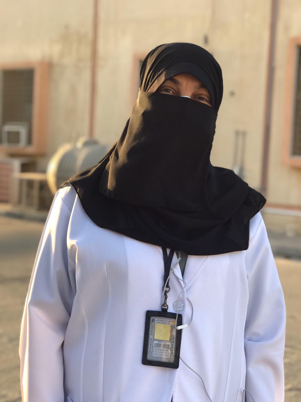 الممرضة التي لديها بنت واحدة وثلاثة أولاد ، تعمل حاليا في مركز المراقبة الصحية بمطار الملك فهد الدولي بالدمام، ومع بداية أزمة كورونا صار عملها في خط الدفاع الأول لفايروس كورونا حيث كانت تقوم مع زملائها بالكشف على القادمين من دولة الصين وعزل المشتبه بهم، حتى الإعلان عن تصنيف كورونا وباء عالميا ليفرض بعدها فحص جميع المسافرين القادمين لاسيما عبر الرحلات الدولية.