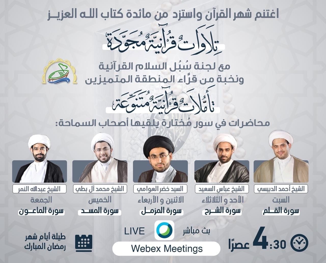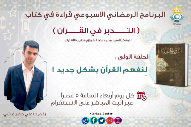 برنامج رمضاني أسبوعي قراءة في كتاب التدبر في القرآن للمفكر السيد محمد رضا الشيرازي «طيب الله ثراه