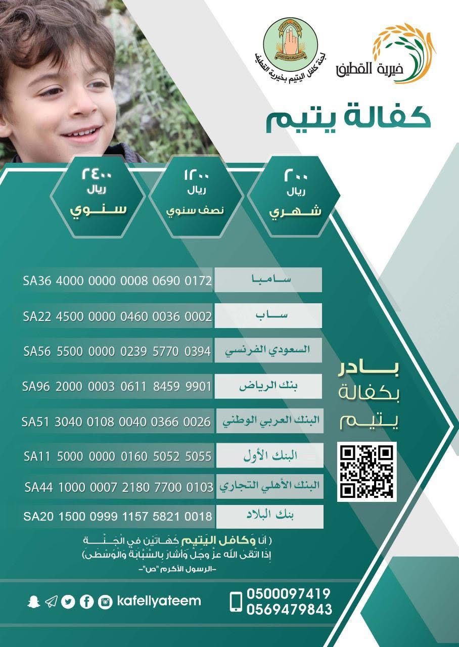 وتدعو المحسنين للمساهمة بتحقيق التكافل الإنساني وغرس الأمل في نفوس الأيتام المحتاجين ضمن مناطق؛ القطيف والتوبي والبحاري والخويلدية والدخل المحدود والتركية والمشاري، والمنيرة.