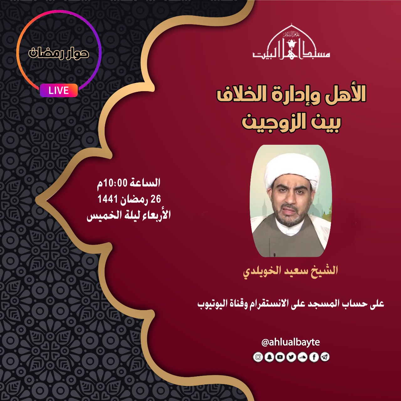 بصفوى بثّاً مباشراً بعنوان «الأهل وإدارة الخلاف بين الزوجين» مع الشيخ سعيد الخويلدي.