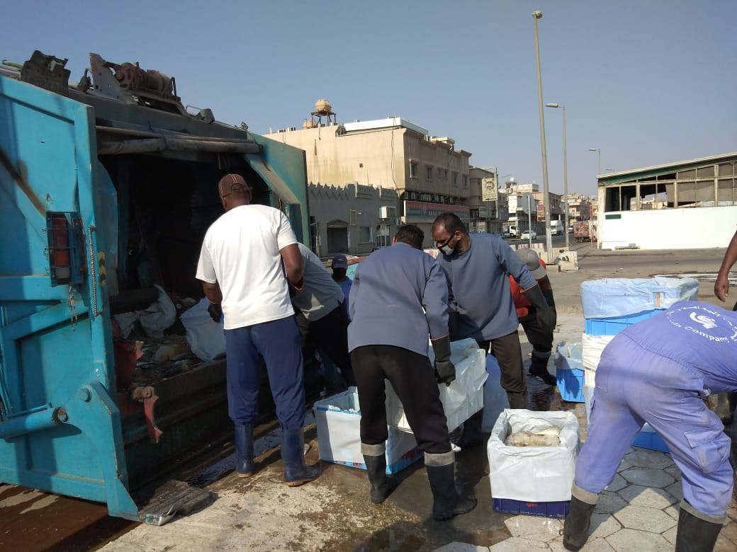القطيف.. إتلاف 1600 كجم أسماك فاسدة و8 أطنان كراتين فارغة