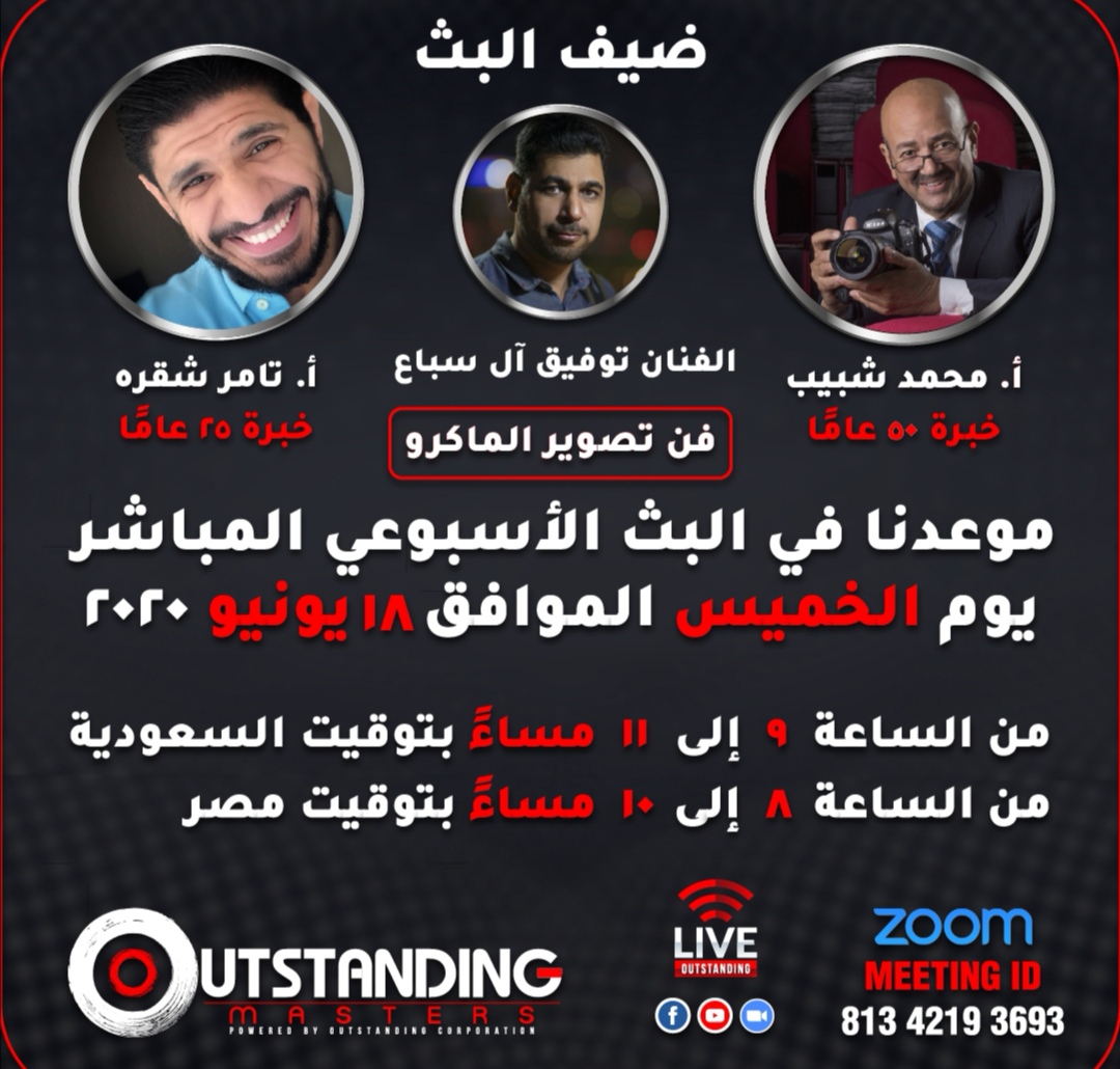 تنظم مجموعة ”اوتستاندينغ ماسترز“ حلقة عن فن تصوير الماكرو الذي يعد أحد فنون التصوير الفوتوغرافي عن طريق برنامج زوم.