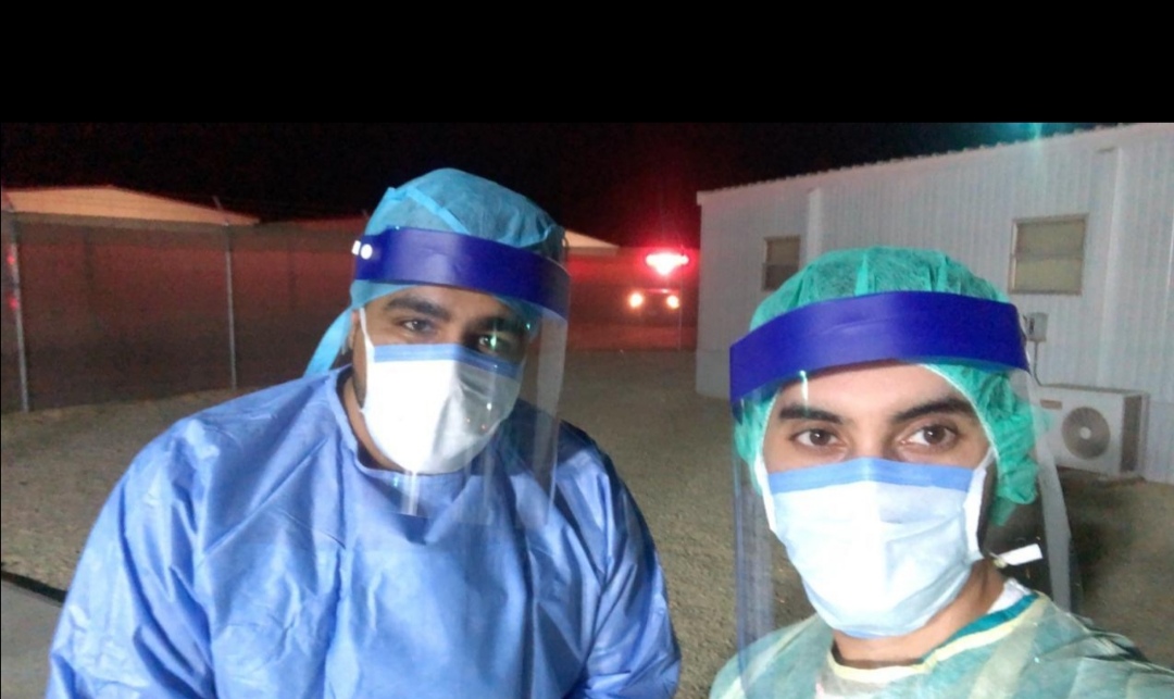 ويحكي عن لسان زملاءه في المحجر الصحي بمدينة الجبيل ”قررنا جميعاً البقاء داخل المحجر حماية لأهلنا من امكانية نقل العدوى“.