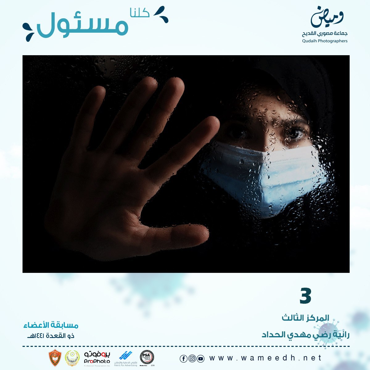 وتابع القول إنه وفي ظل هذه الجائحة رأت إدارة وميض تحديد محور ”كلنا مسئول“ لمسابقتها الشهرية الخاصة بالأعضاء لشهر ذي القعدة جاء ذلك كخطوة لخدمة المجتمع وإيصال رسالة توعوية، وتذكره بدور الحيوي في تحمّل مسئوليته في إتباع كل وسائل الوقاية والإحترازات لمحاربة تفشي هذا الوباء".
