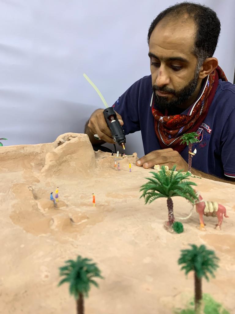 ولفت إلى استخدامه بعض المجسمات البشرية والحيوانات والأشجار لإضفاء جانب من الحياة على المجسم.