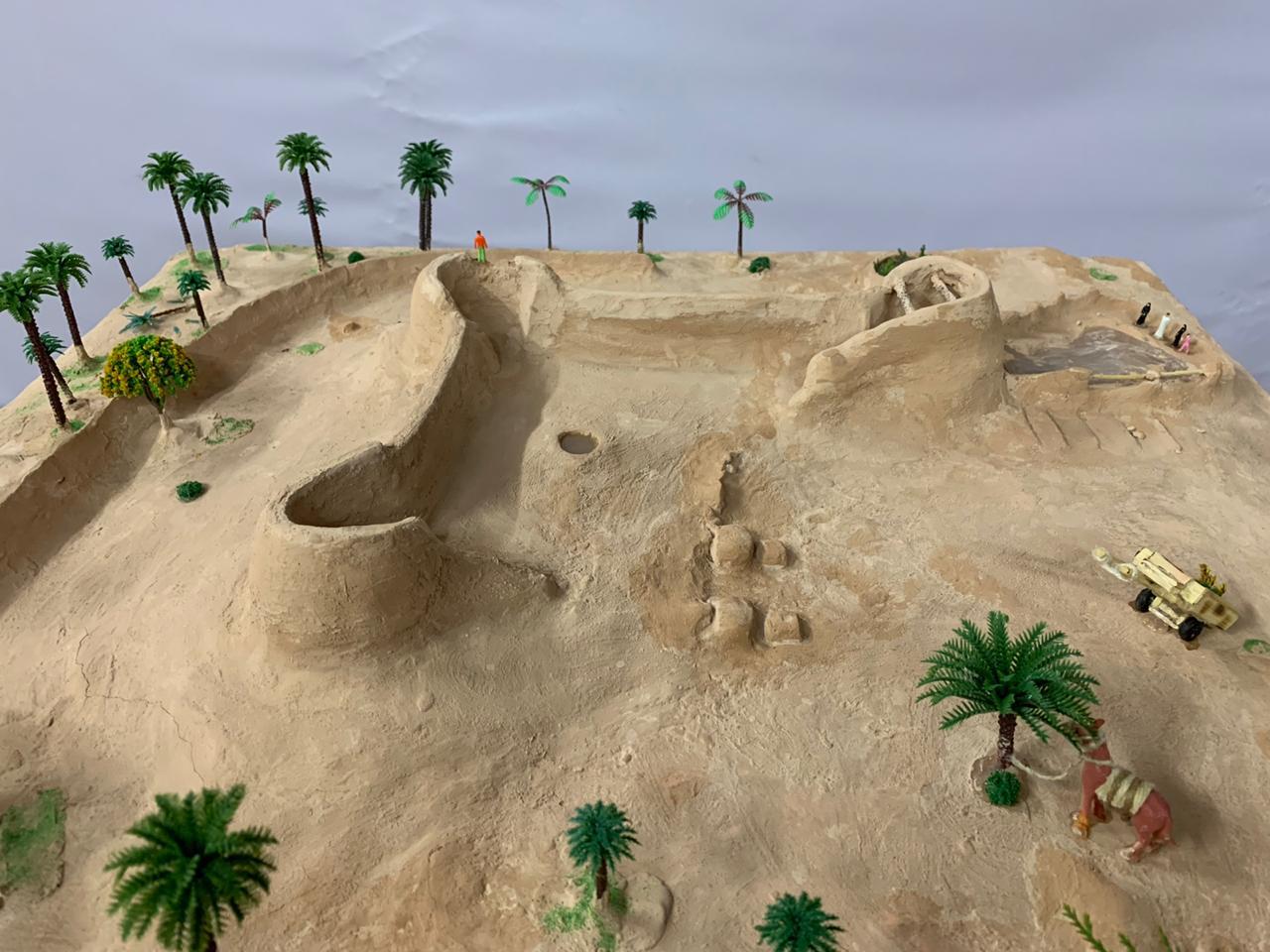 وبين أبو السرير وهو من أهالي تاروت، بأنه استغرق إعداد حوالي أسبوعين في عمل المجسم، مستخدما الخشب والحجارة الصغيرة لتكوين قاعدة متماسكة ممسوحة بالطين.