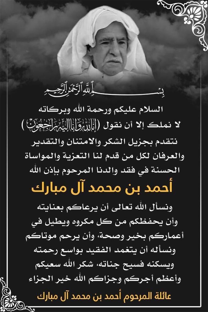 انتقل إلى رحمة الله تعالى الحاج أحمد محمد جعفر المبارك «أبو علي»، من أهالي صفوى.