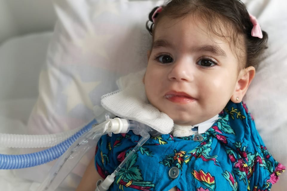 الطفلة ”كيان“ التي تتنفس من خلال الأنبوب ترقد منذ خمسة شهور في مستشفى جاما بالدمام وكانت قبلها في مستشفى القطيف المركزي لخمسة شهور أخرى.