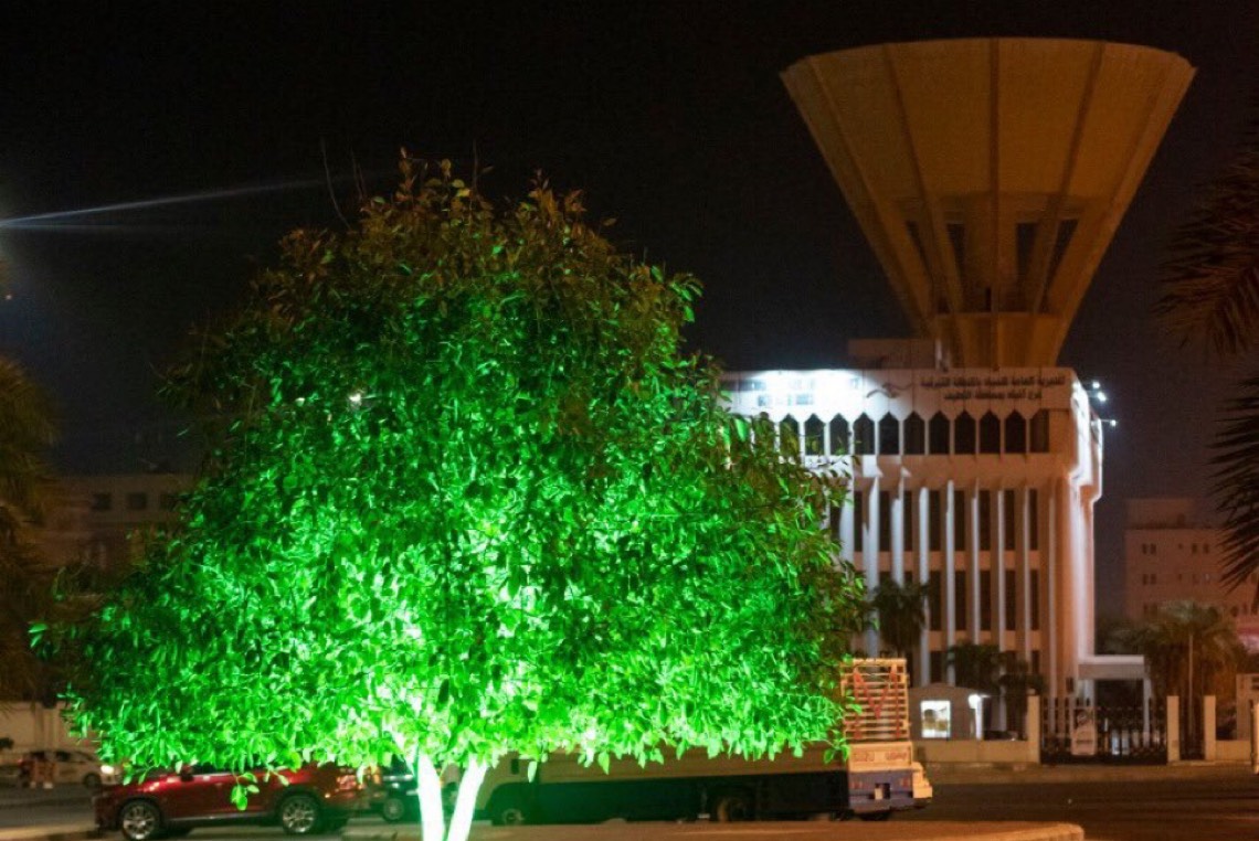 زينت بلدية محافظة القطيف، الشوارع الرئيسية بالمحافظة، بمناسبة الاحتفال باليوم الوطني 90 للمملكة، تحت شعار ”همة حتى القمة 90“.