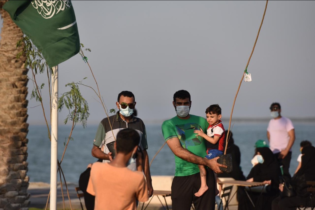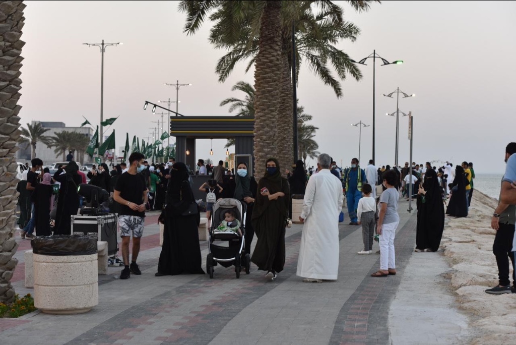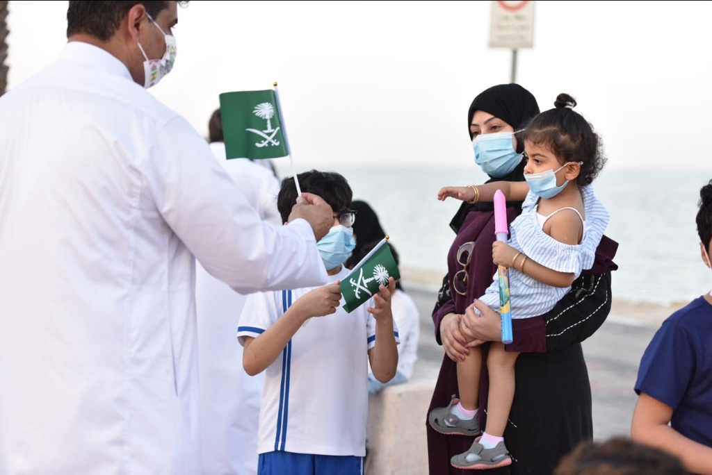 سيطر اللون الأخضر على الأجواء الاحتفالية التي نظمتها بلدية محافظة القطيف، اليوم الأربعاء، بمناسبة اليوم الوطني 90 بالواجهة البحرية بحي الشبيلي، وسط تنظيم عالي، والالتزام بالاحترازات الصحية لمواجهة "كورونا"، حيث تم توزيع 15 ألف علم.