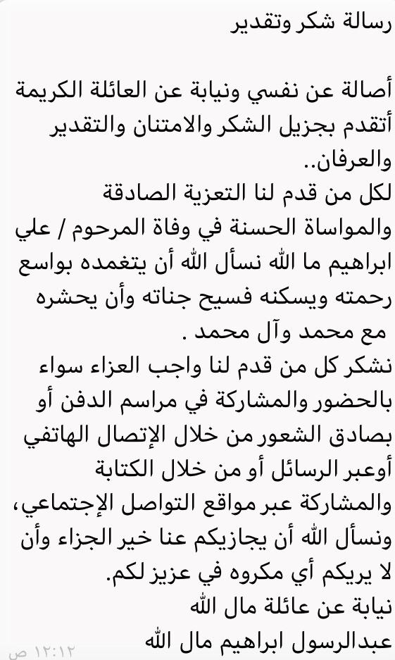 انتقل إلى رحمة الله تعالى الشاب علي ابراهيم خليل آل مال الله «أبو فاطمة»، من أهالي القطيف «حي الخامسة»، عن عمر ناهز 35 عاماً.