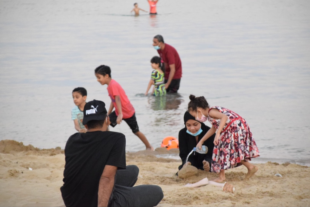 وفرض ساحل الرملة البيضاء نفسه كموقع على الخارطة خلال الأسابيع الماضية حيث تحول الشاطئ إلى منطقة تغص بأعداد كبيرة من الأطفال والنساء والرجال، بهدف الاستمتاع جزء من الوقت بجوار البحر.