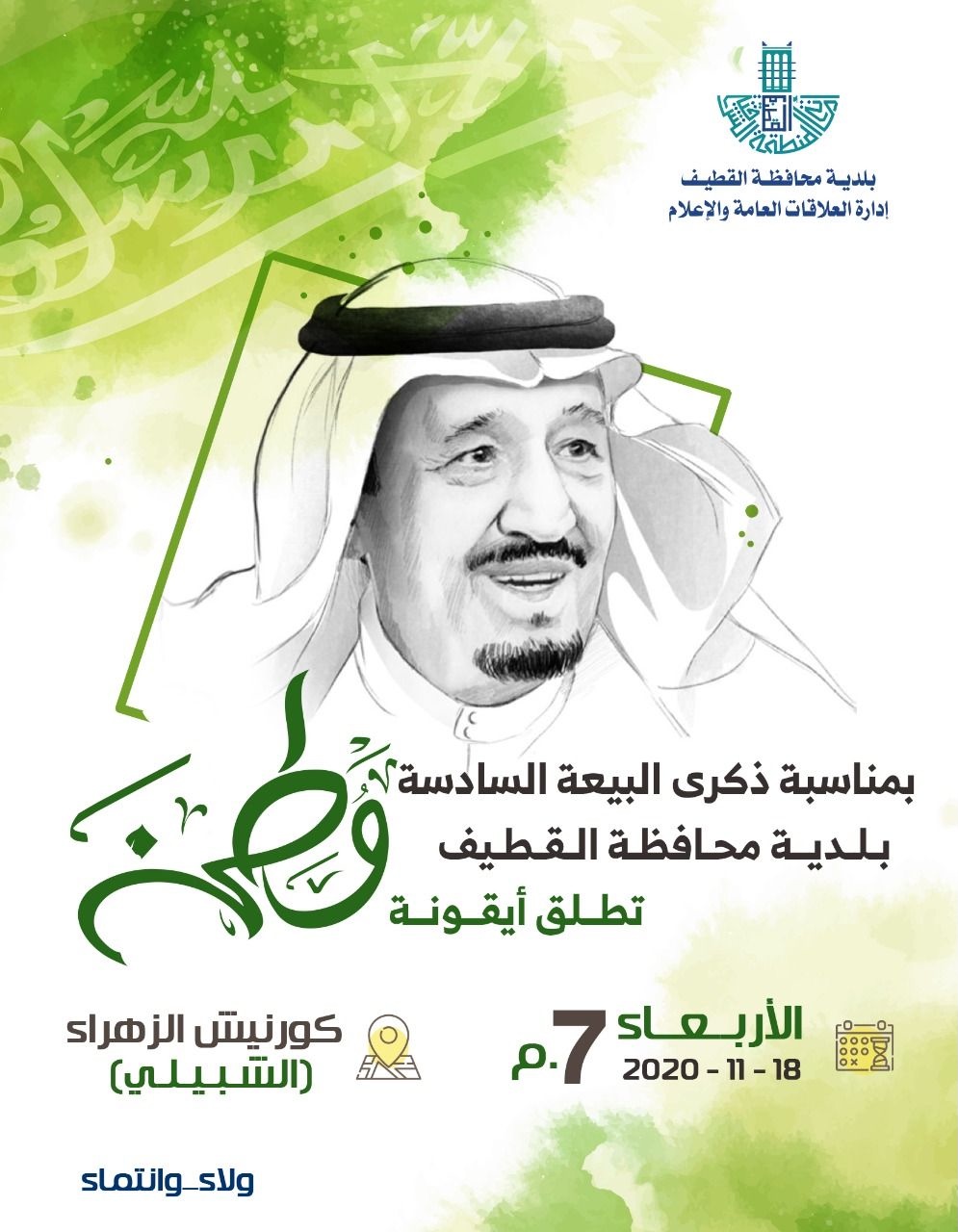 وأوضح رئيس بلدية محافظة القطيف المهندس محمد الحسيني أن أطلاق أيقونة ”وطن“ يأتي أحتفالاً بالذكرى السادسة لبيعة خادم الحرمين الشريفين.