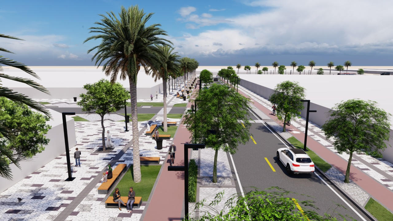 ويبلغ إجمالي أطوال هذه الشوارع «5000 متر طولي» وبإجمالي مساحة «145000 متر مربع» ويتضمن المشروع أعمال الإزالة والتسوية الترابية وأعمال السفلتة وأرصفة المشاة ومواقف السيارات، بالإضافة الى أعمال شبكة الري والتشجير وأعمال الإنارة ومسار للدراجات.