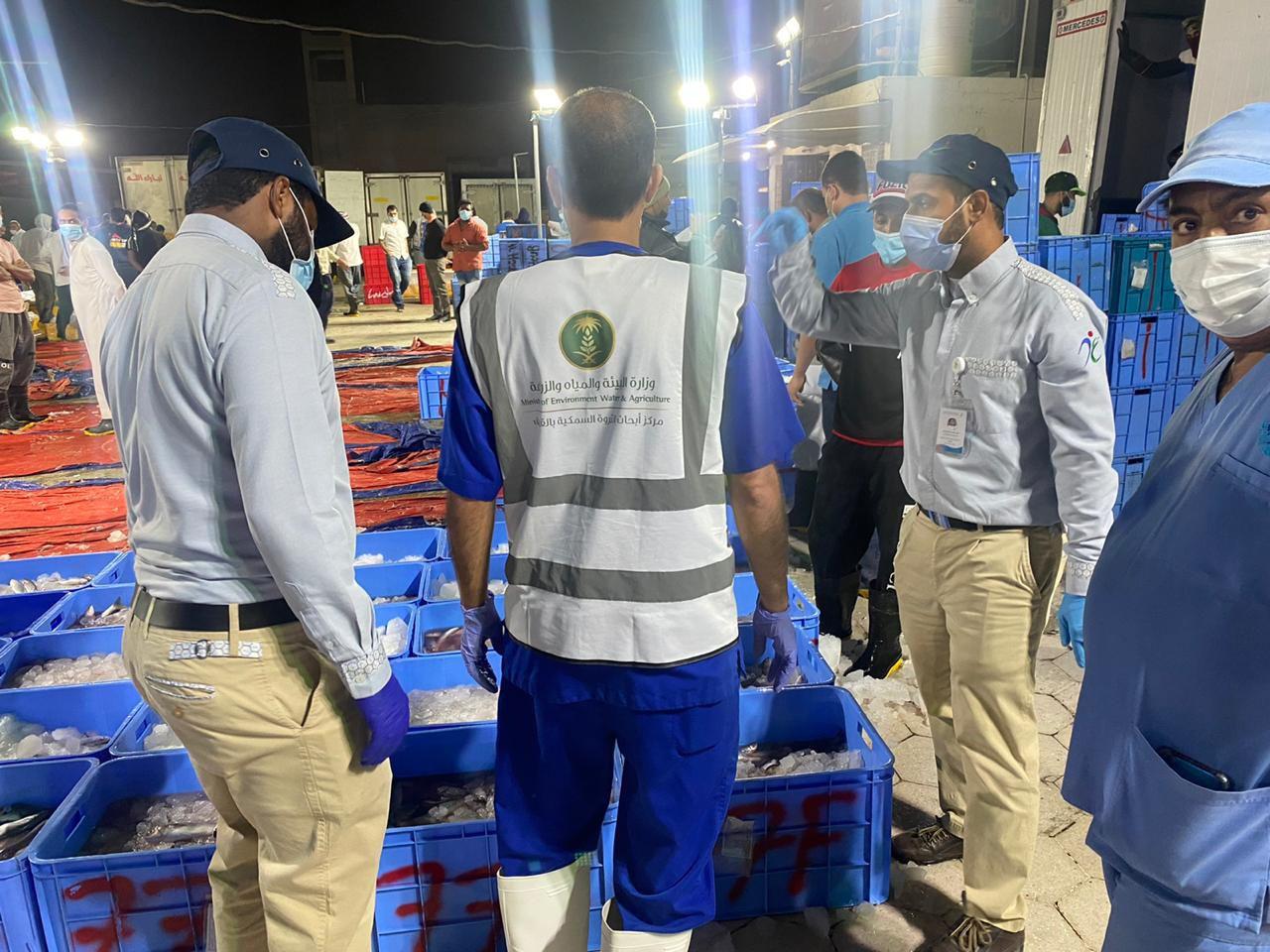 رصد مركز أبحاث الثروة السمكية بمحافظة القطيف، التابع لفرع وزارة البيئة والمياه والزراعة بالمنطقة الشرقية، 203 كيلو جرامات من الأحياء المائية الفاسدة، منها 114 كيلو أسماك متنوعة، و19 كيلو من الروبيان، و35 كيلو من القبقب، إضافةً إلى 35 كيلو من الخثاق، بسبب عرض أسماك فاسدة، أو ظهور علامات الفساد عليها، أو مجهولة المصدر، فيما صادر المركز أكثر من 72 قطعة من أدوات التقطيع والتجهيز، غير صالحة للاستخدام.