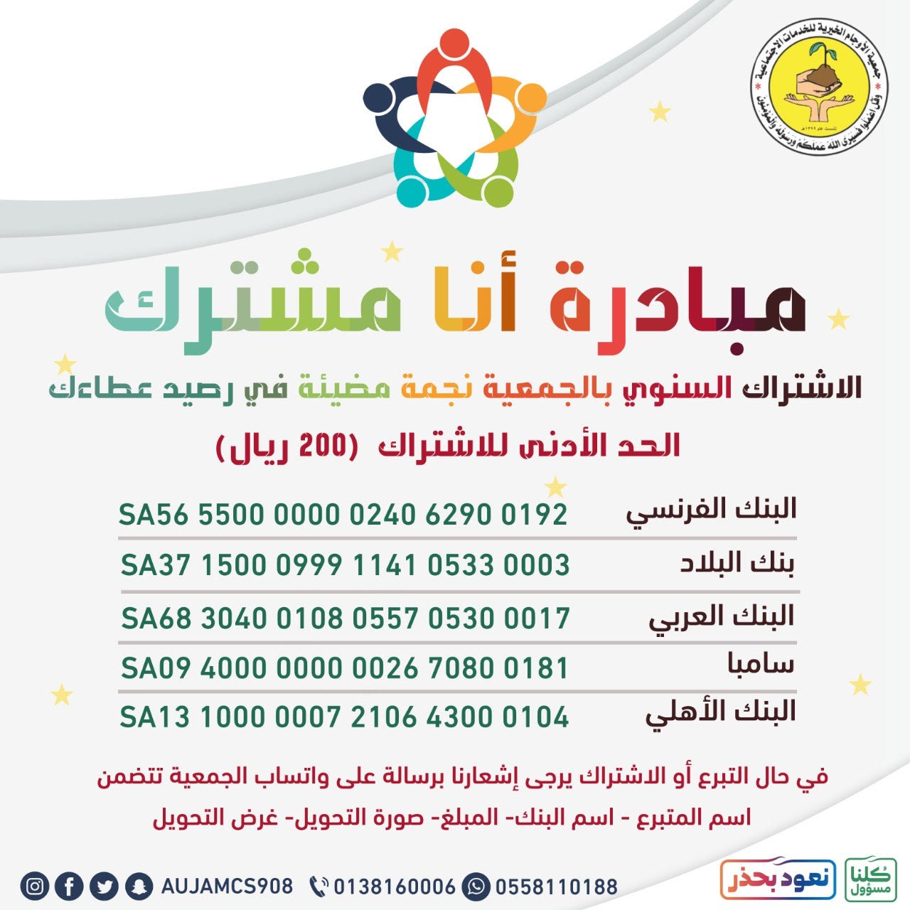 «خيرية الأوجام» تدعو مشتركيها لتسديد اشتراكاتهم السنوية