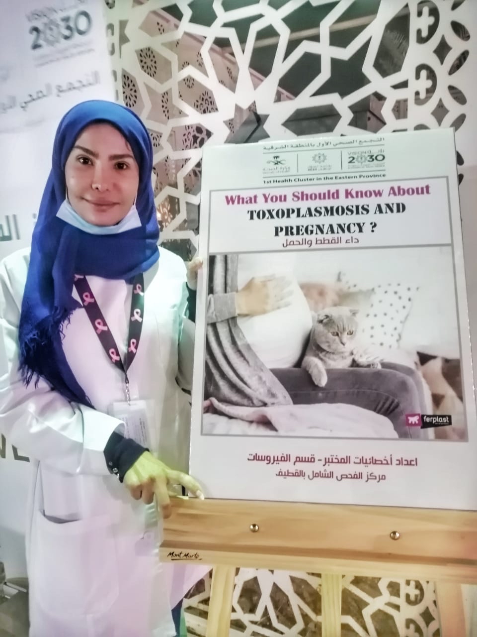 نصحت الأخصائيه في مختبر الفحص الشامل بالقطيف ”قسم الفيروسات“ ليلى علي الدعلوج، كل امرأة تربي في بيتها قطة، وتخطط للحمل والإنجاب بالفحص قبل ”3-6 شهور“ إذا ماكانت مصابة بداء القطط أو دونه.