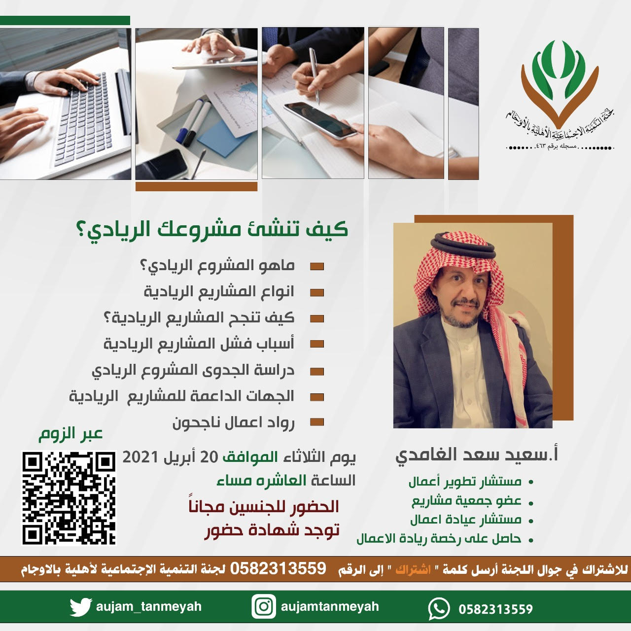 تنظم لجنة التنمية الاجتماعية الأهلية بالأوجام محاضرة عن بعد بعنوان «كيف تنشئ مشروعك الريادي».