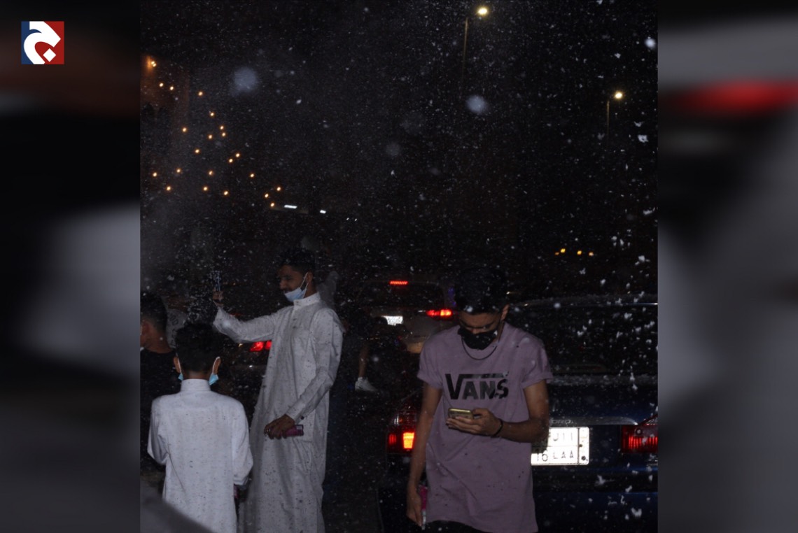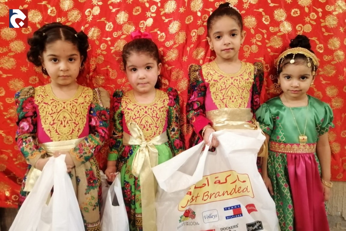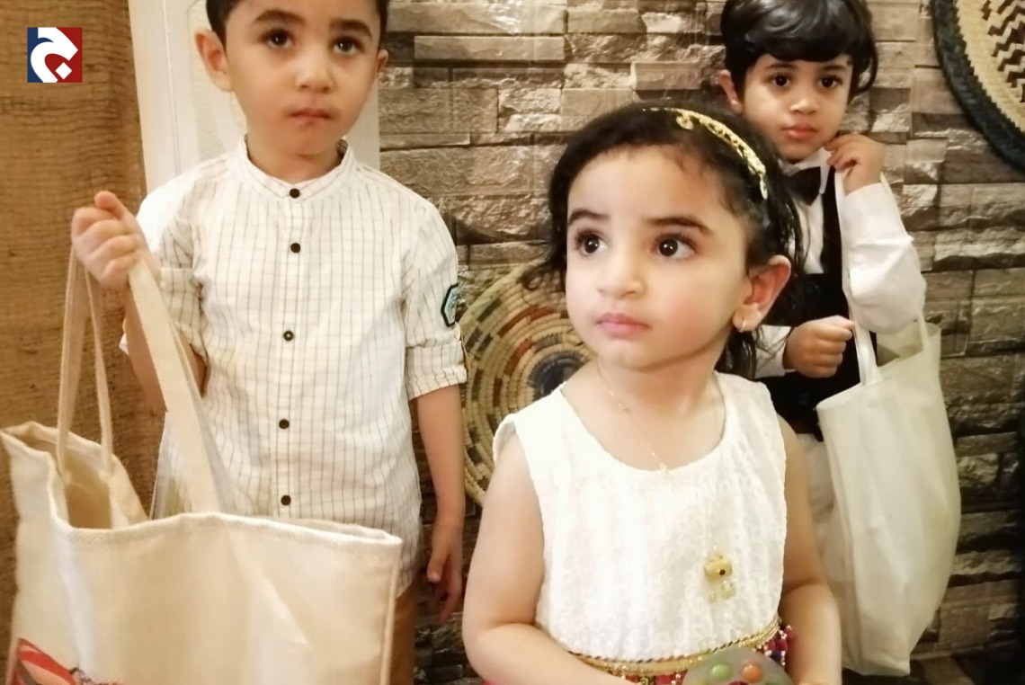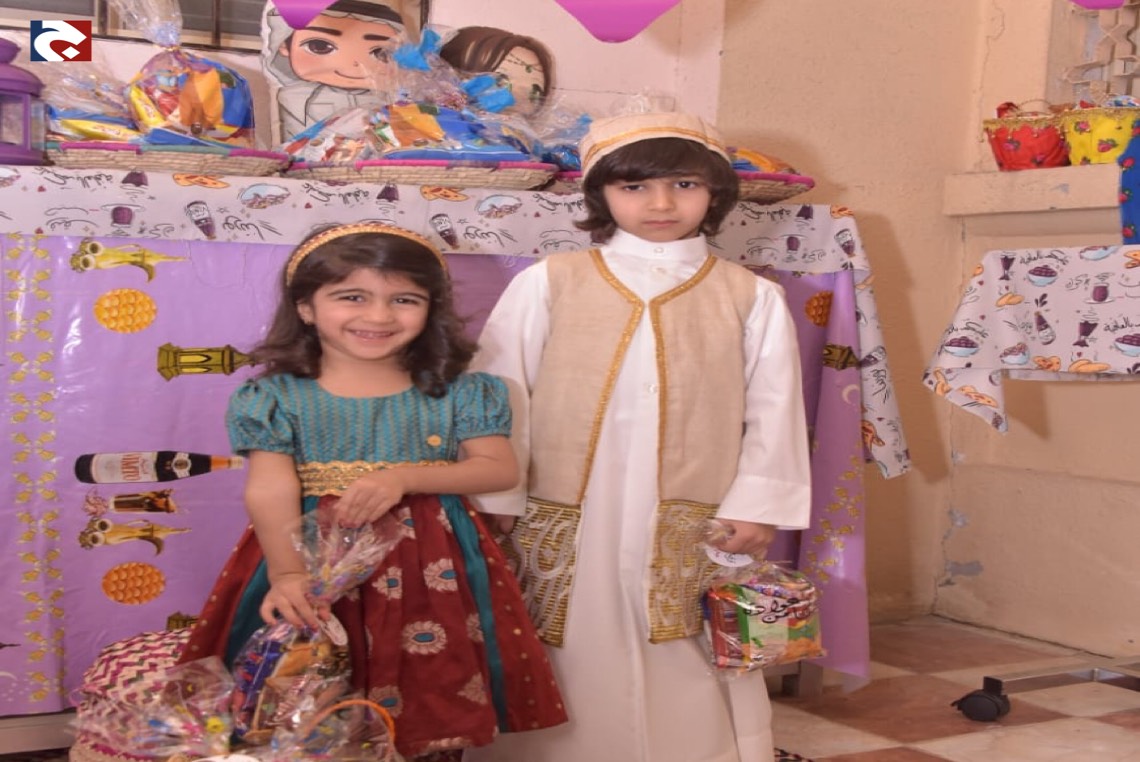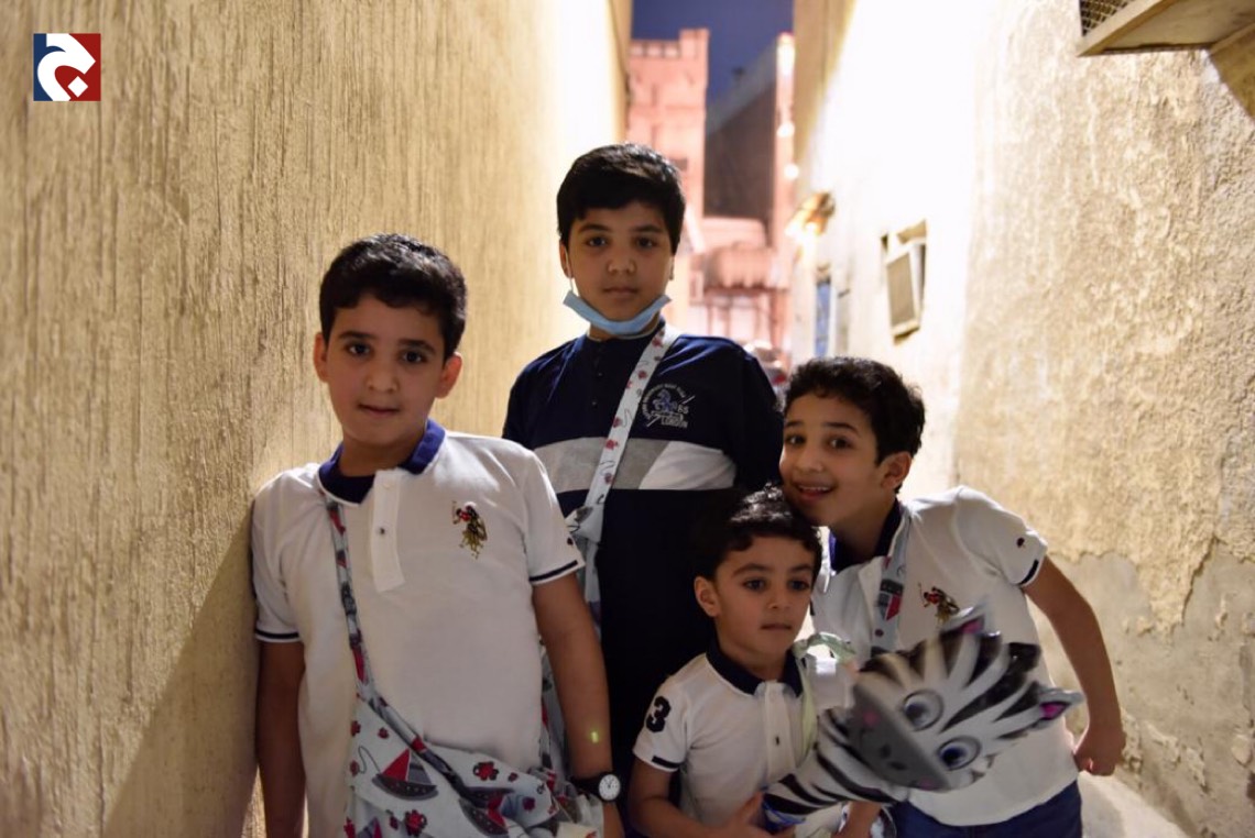 وانتشر الأطفال المتزينين بالثياب الخاصة بالقرقيعان وهم يحملون الأكياس مارين بمنازل الأقارب والجيران لجمع الهدايا والحلويات وهم يرددون بصوت مسموع ”ناصفة حلاوة اعطونا الله يعطيكم“.