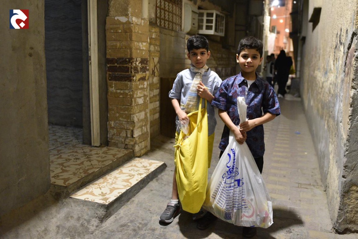 وراح الأطفال يتنقلون من منزل إلى آخر منشدين «أعطونا من مالكم.. الله يخلي عيالكم».. في يوم احتفالي جميل كسر الروتين اليومي برائحة الأطعمة التي قُدمت للناس مجاناً.