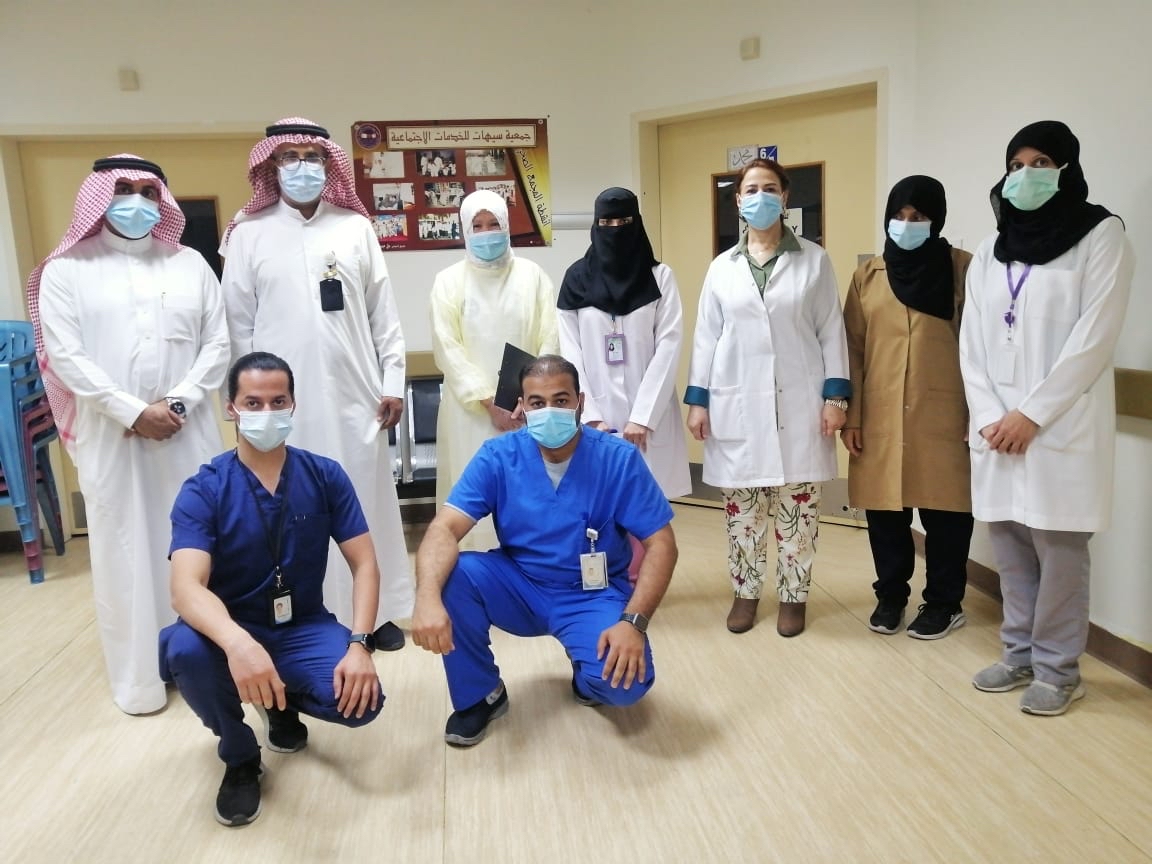 وأكمل الفريق المكون من رئيس قسم الطب المنزلي بمستشفى القطيف المركزي شوقي الصادق، والأخصائي الاجتماعي فاضل المخلوق، والممرضين جاسم أمان، وأحمد المخرق، ورمله المسحر، وزهراء السبع، ومدخل المعلومات والبيانات محمد الجارودي، إعطاء الجرعة الأولى من لقاح ”كورونا“.